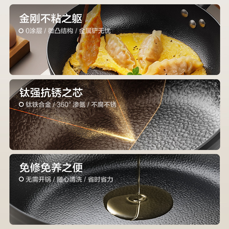 【加深加厚 不易凸底】爱仕达有钛牛排煎锅铁锅平底锅家用不粘锅