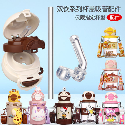 史努比儿童保温杯盖吸管吸嘴配件水杯杯盖盖子一盖双饮盖原装正品