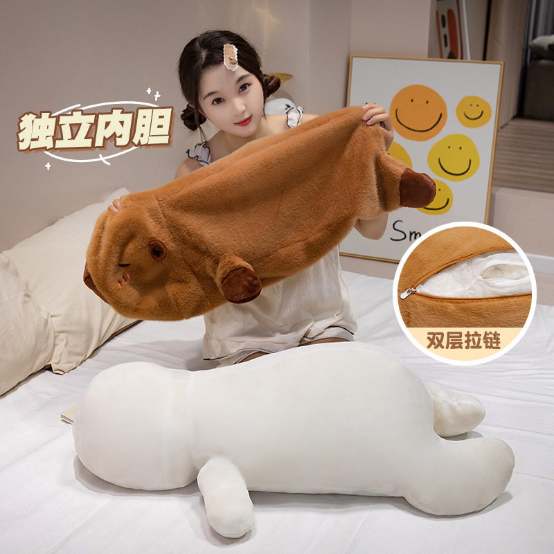 趴款水豚卡皮巴拉抱枕女生睡觉床上抱睡公仔长条枕毛绒玩具布娃娃