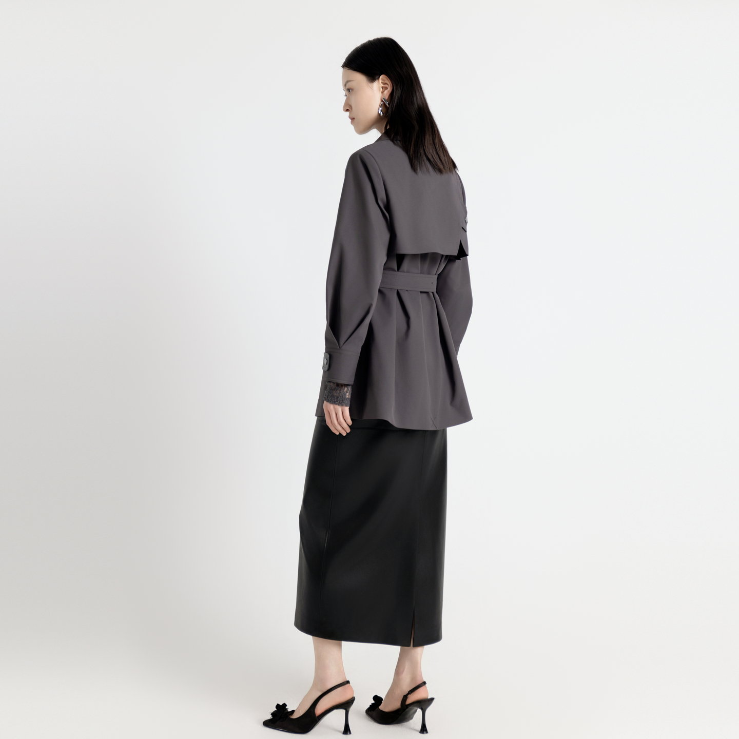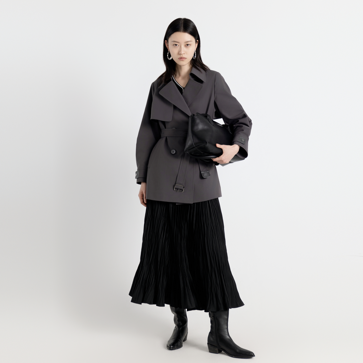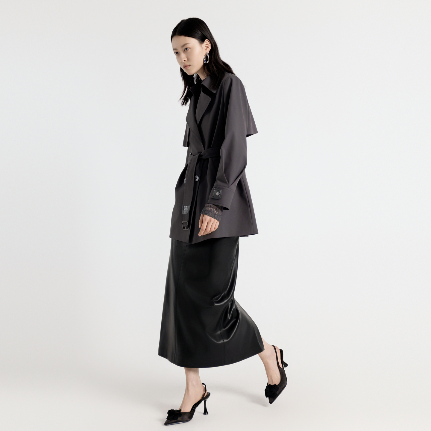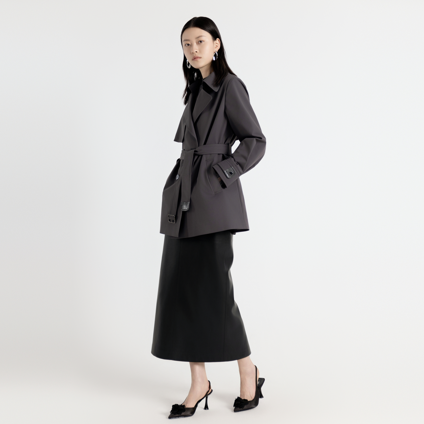 婉甸2025年秋新品岩石灰带腰带中长款通勤风衣女外套1243B04DM4