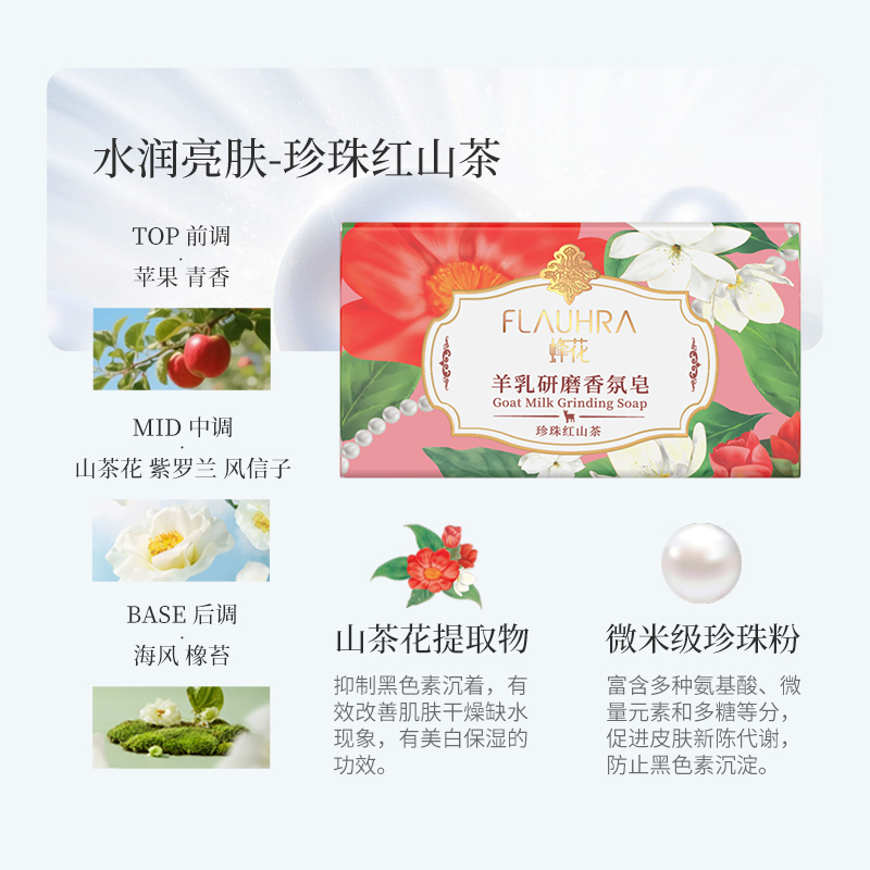 FLAUHRA蜂花新品羊乳研磨香氛皂茉莉葡萄柚205g洗脸洗手
