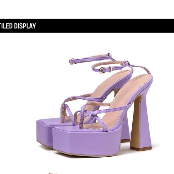 粗跟高跟夹趾方头防水台凉鞋