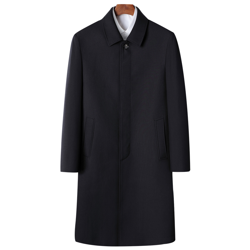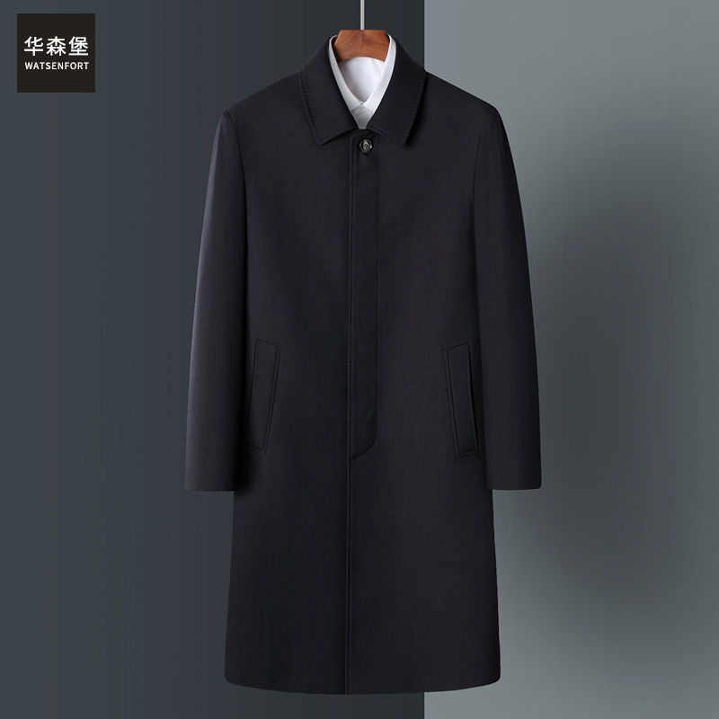 爸爸长款过膝风衣男春秋季中年人男士翻领中老年休闲爷爷春装外套