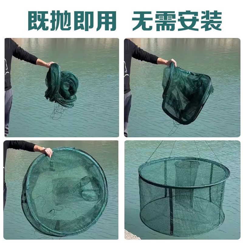 养鱼网箱鱼苗甲鱼大鱼养殖存鱼漂浮鱼护加密大号折叠鱼笼圆形家用