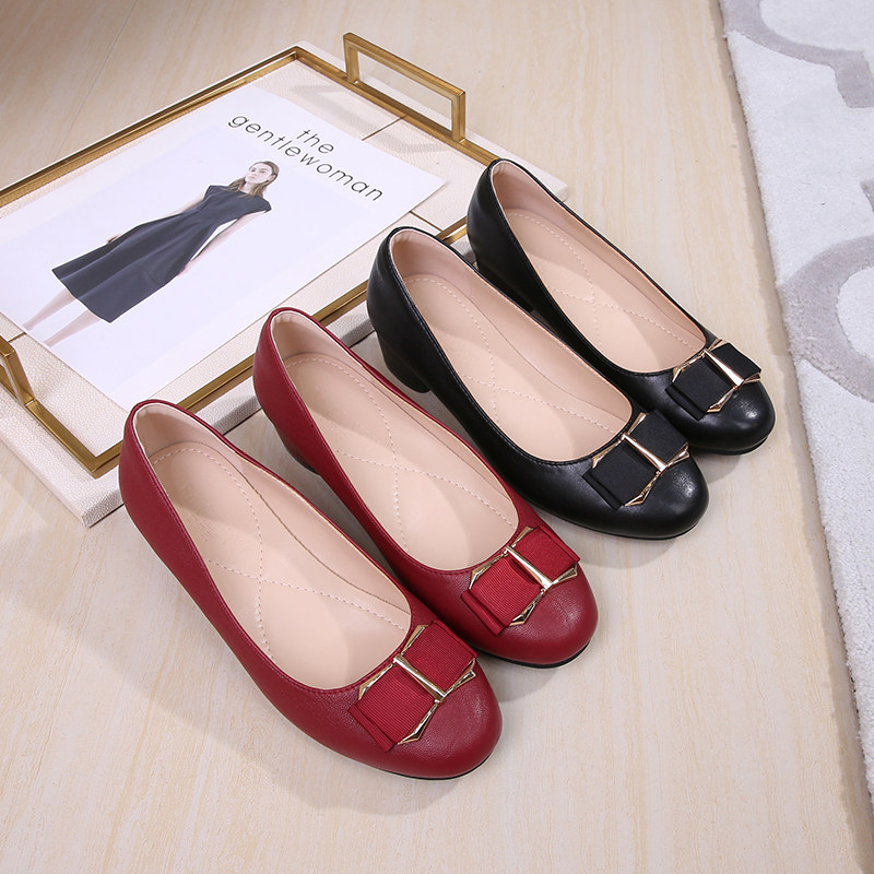 百诗友圆头休闲蝴蝶结妈妈鞋