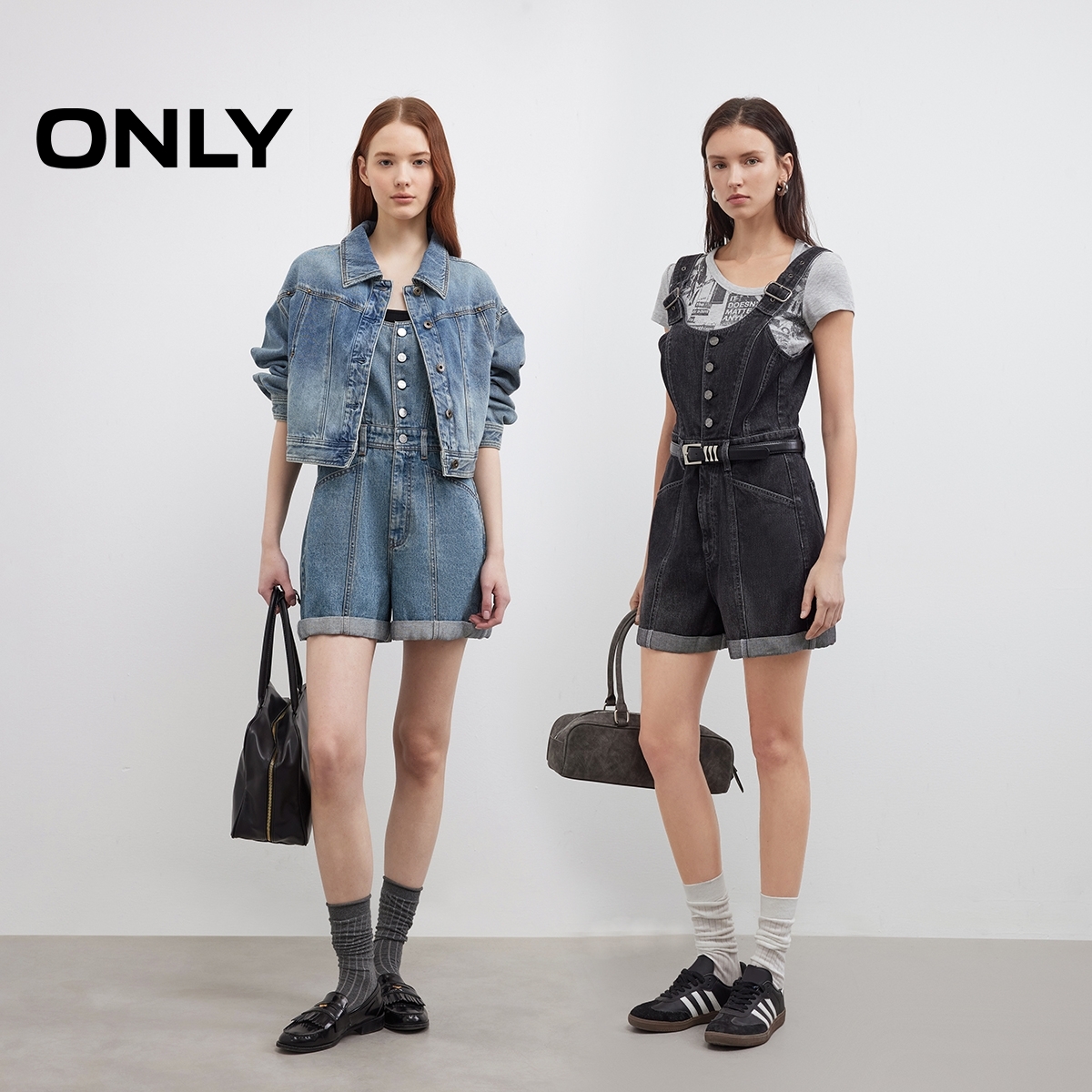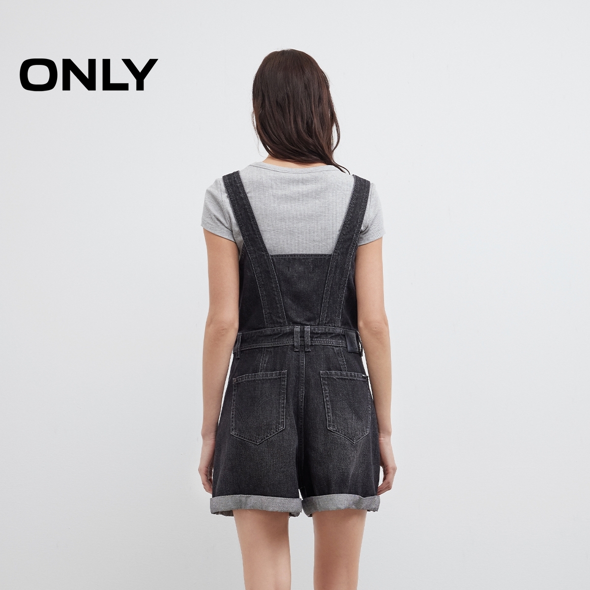 o区绫致ONLY25夏季莱赛尔可调节宽肩带A字显瘦背带裤牛仔短裤女