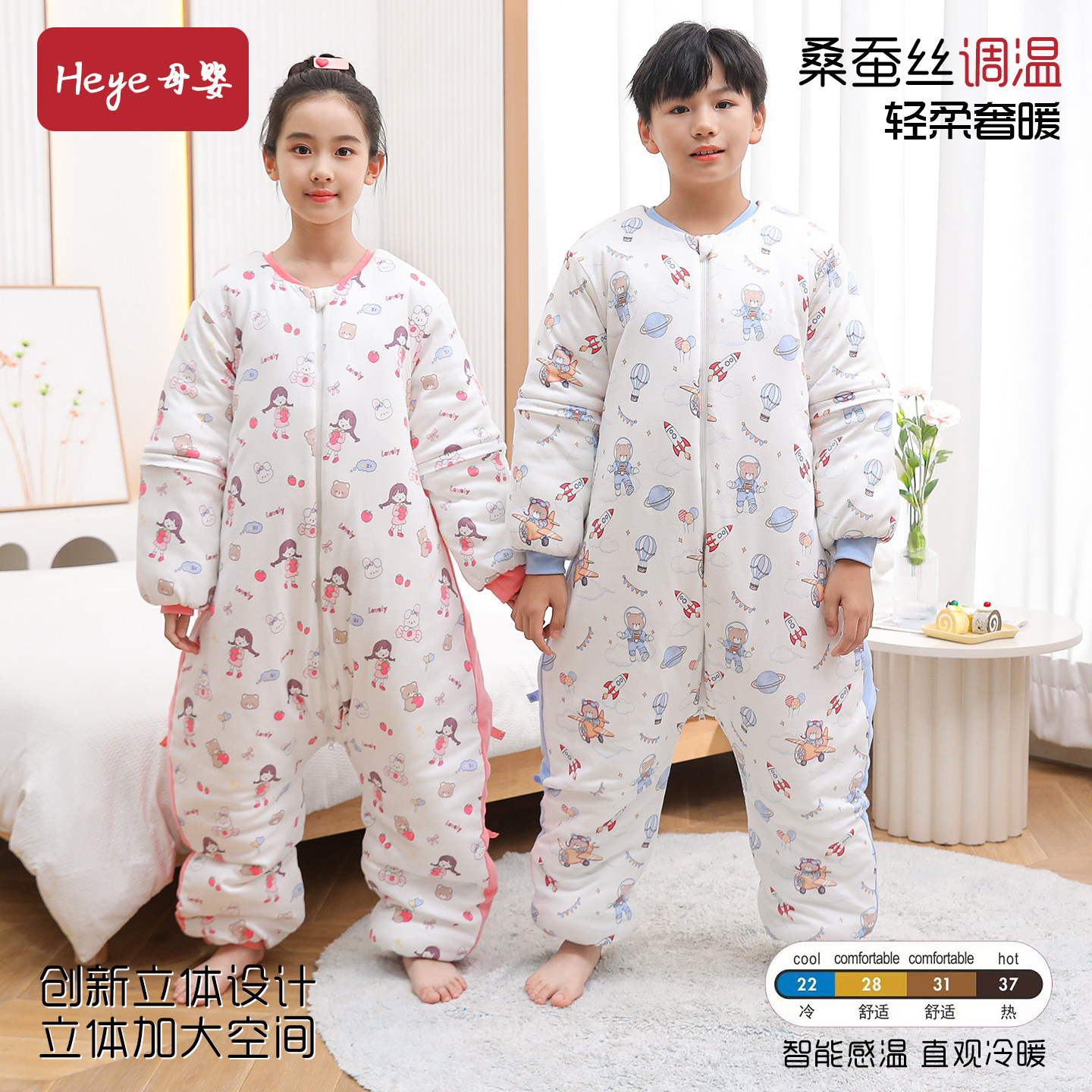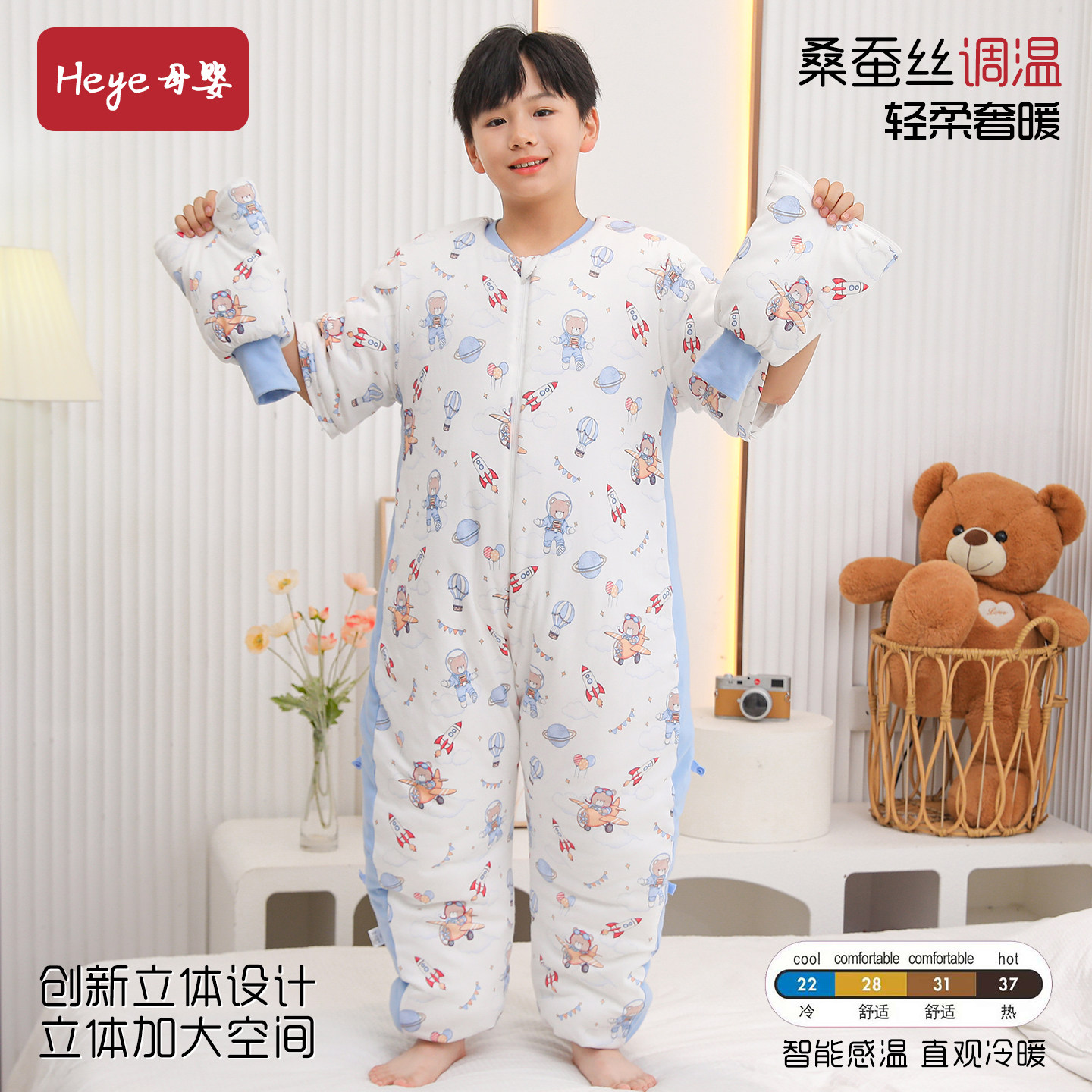 蚕丝立体分腿儿童睡袋春秋冬季