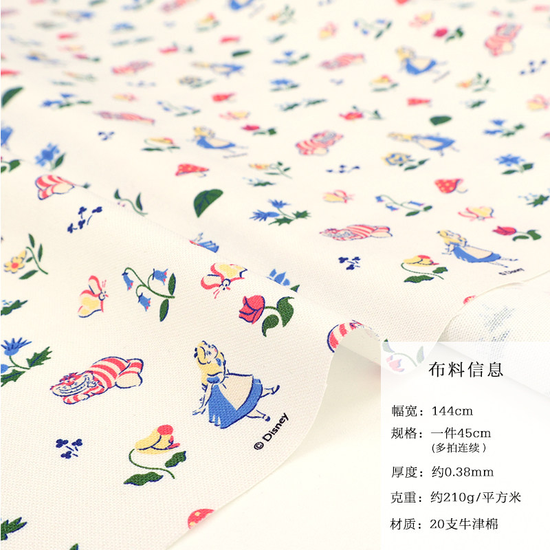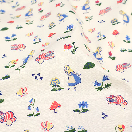 韩国cottonvill进口牛津布纯棉布料手工服装背包面料爱丽丝柴郡猫