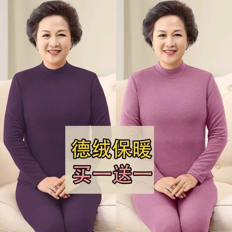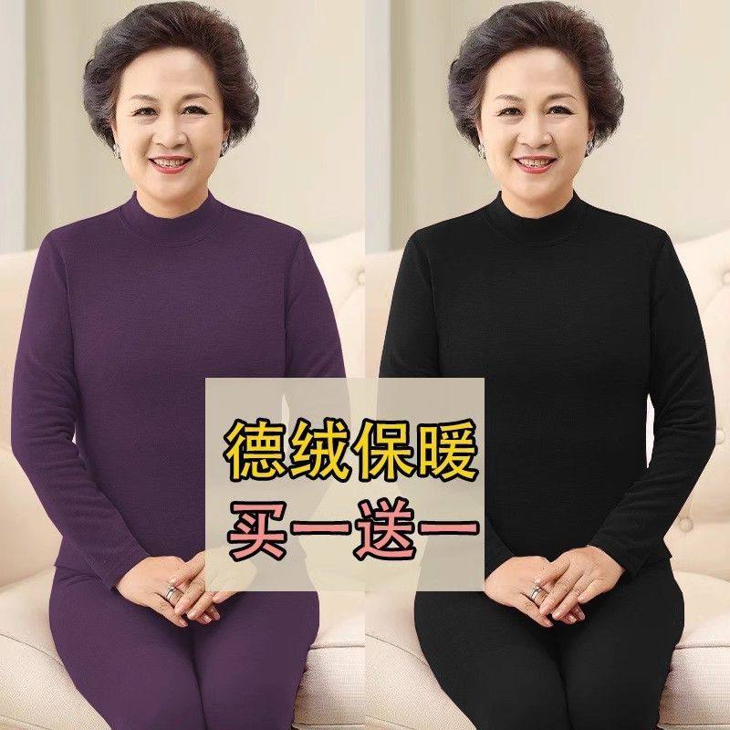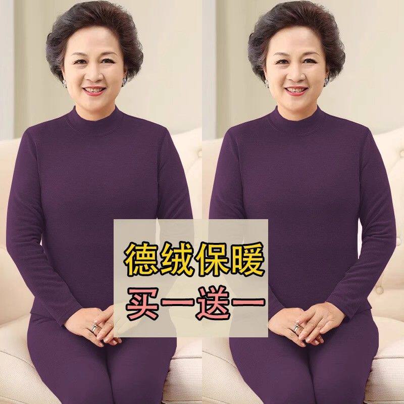 【买一送一】高领德绒保暖内衣女士冬季老人加厚秋衣秋裤妈妈套装