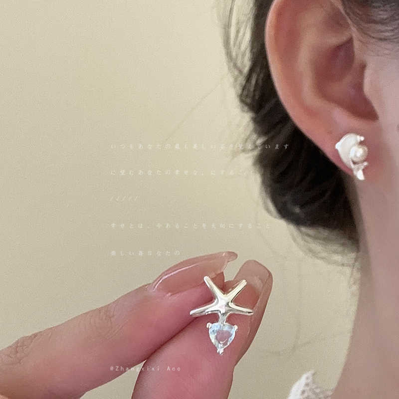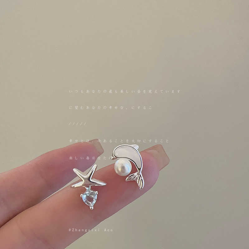 独特不对称海星海豚耳钉女款个性气质优雅精致时尚百搭耳环耳饰品