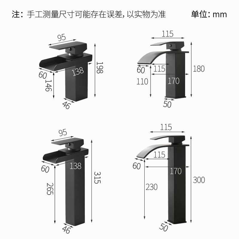全铜瀑布洗脸盆洗手盆面盆水龙头C浴室柜卫生间黑色龙头宽嘴冷热