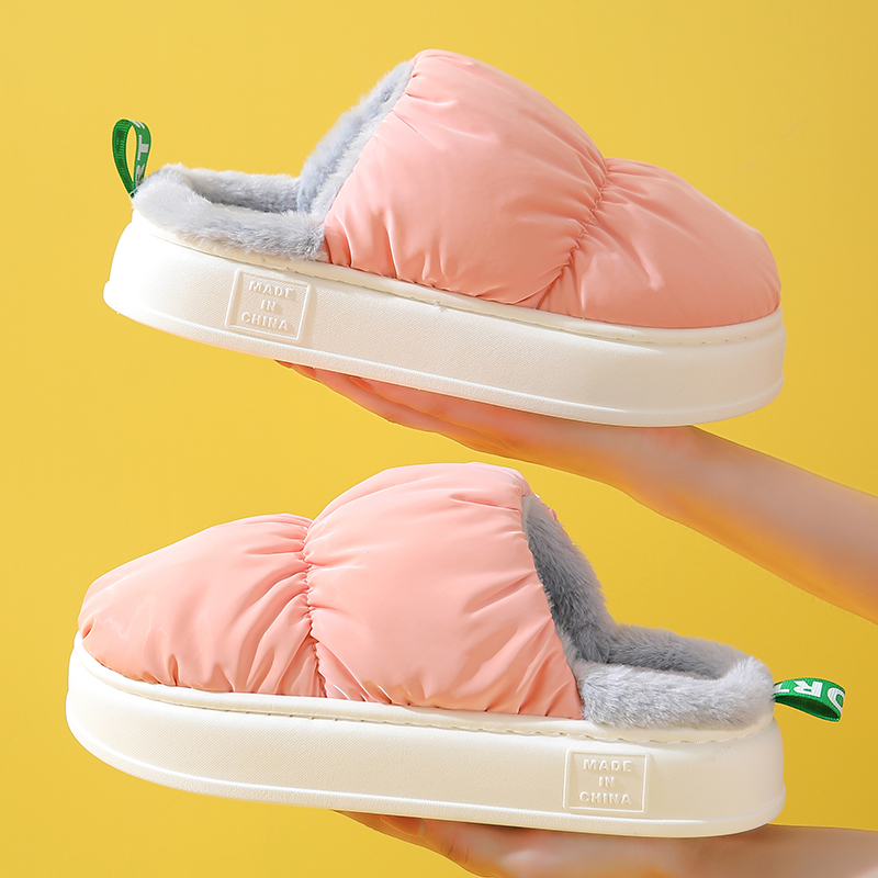 冬季保暖厚底情侣棉拖鞋女毛绒保暖月子鞋防滑静音地板拖鞋男士
