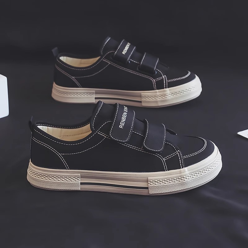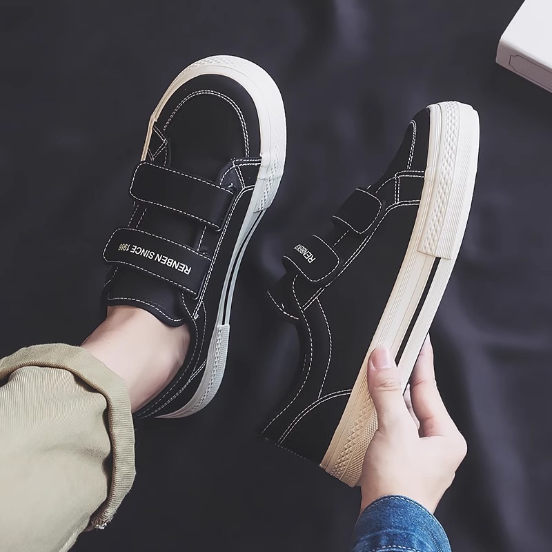 人本魔术贴帆布鞋男鞋春秋休闲懒人一脚蹬板鞋新款男士潮流运动鞋