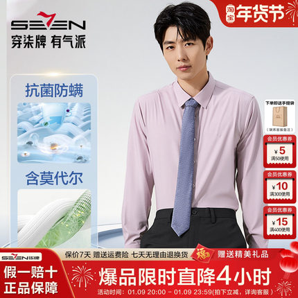 【莫代尔】柒牌男士婚庆长袖衬衣25秋季新款休闲粉色喜庆青年寸衫