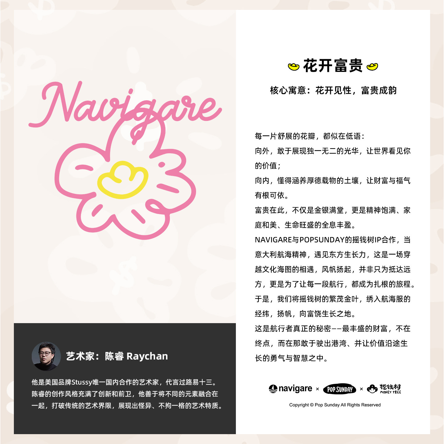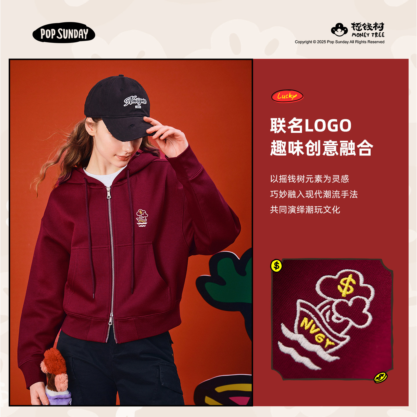 [popsunday摇钱树联名]NAVIGARE意大利小帆船女开衫卫衣花开富贵