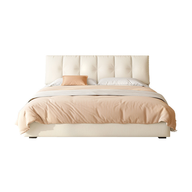 金可儿政府补贴奶油风真皮床 现代简约高端双人婚床 2025新款设计