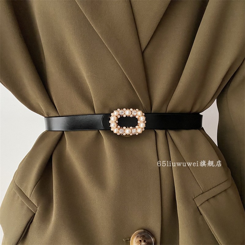 水钻真皮女款配牛仔裤皮带装饰裙子西装新款高级感时尚百搭腰带细