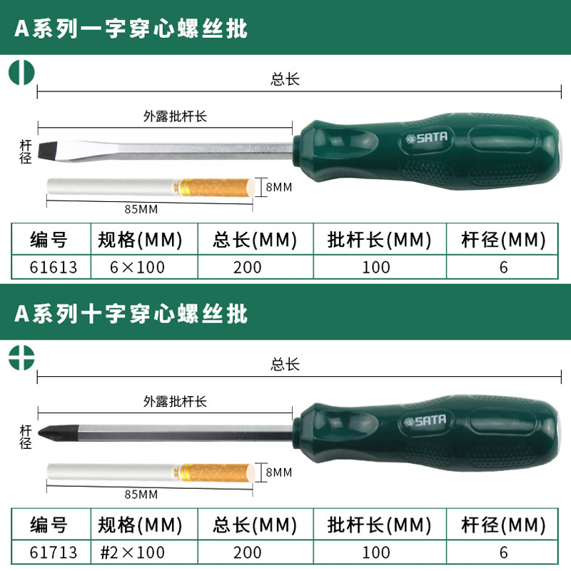 Sata/世达穿心螺丝批一字十字可敲击螺丝刀改锥起子汽修工具61713