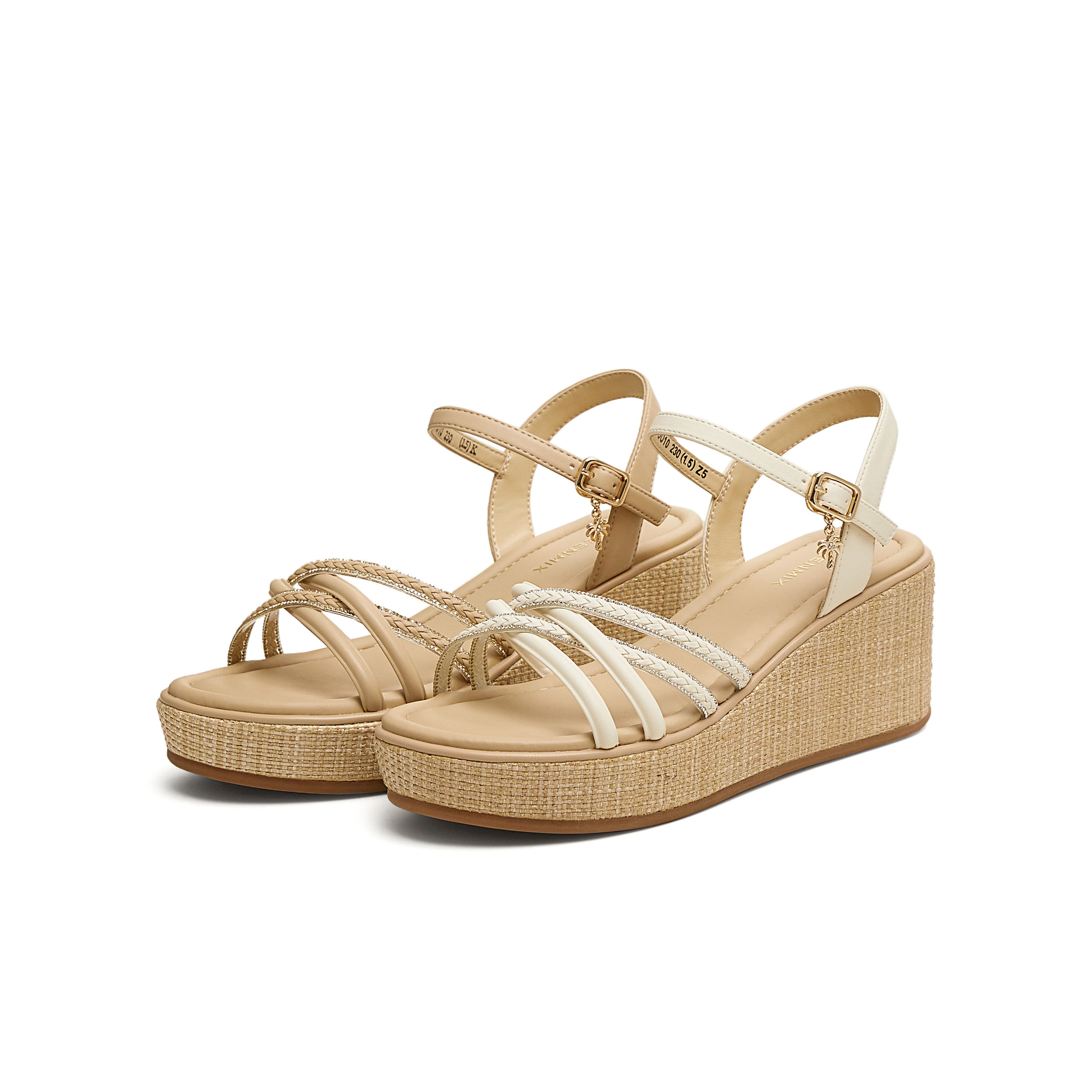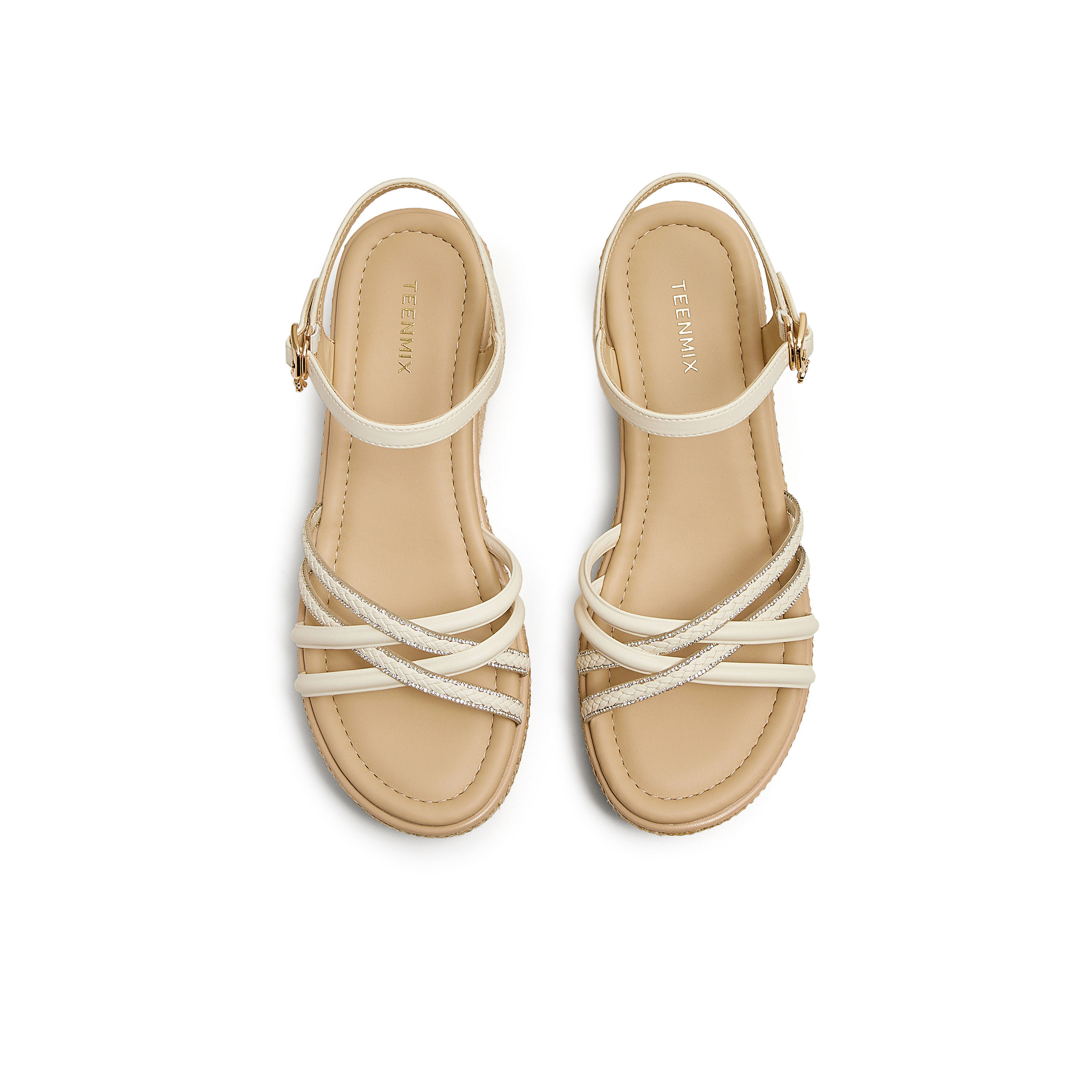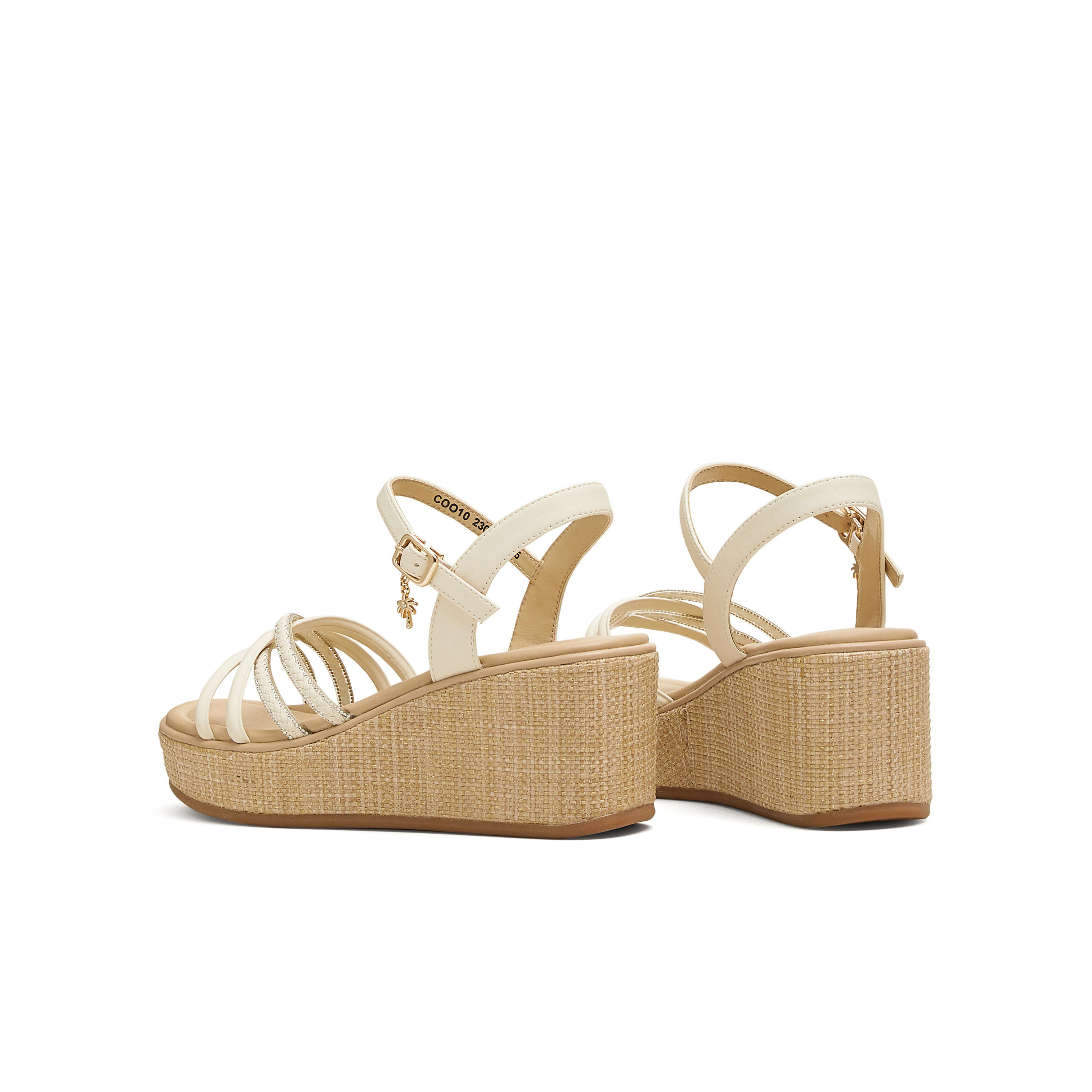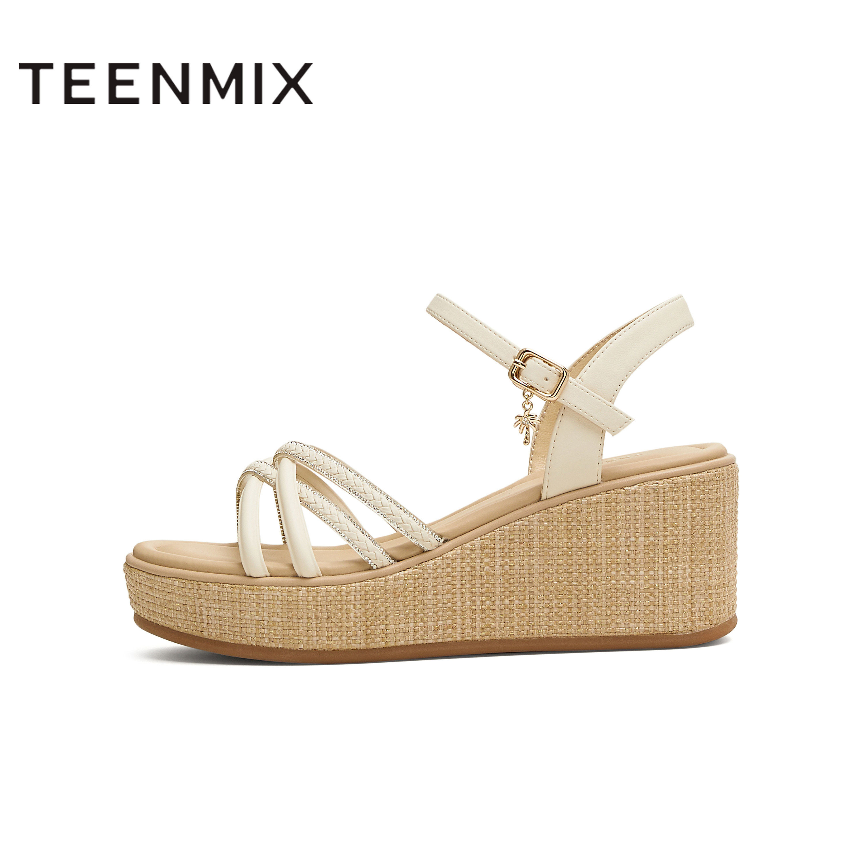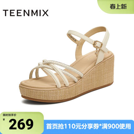 天美意夏季新款商场同款交叉条带坡跟女一字带凉鞋COO10BL5