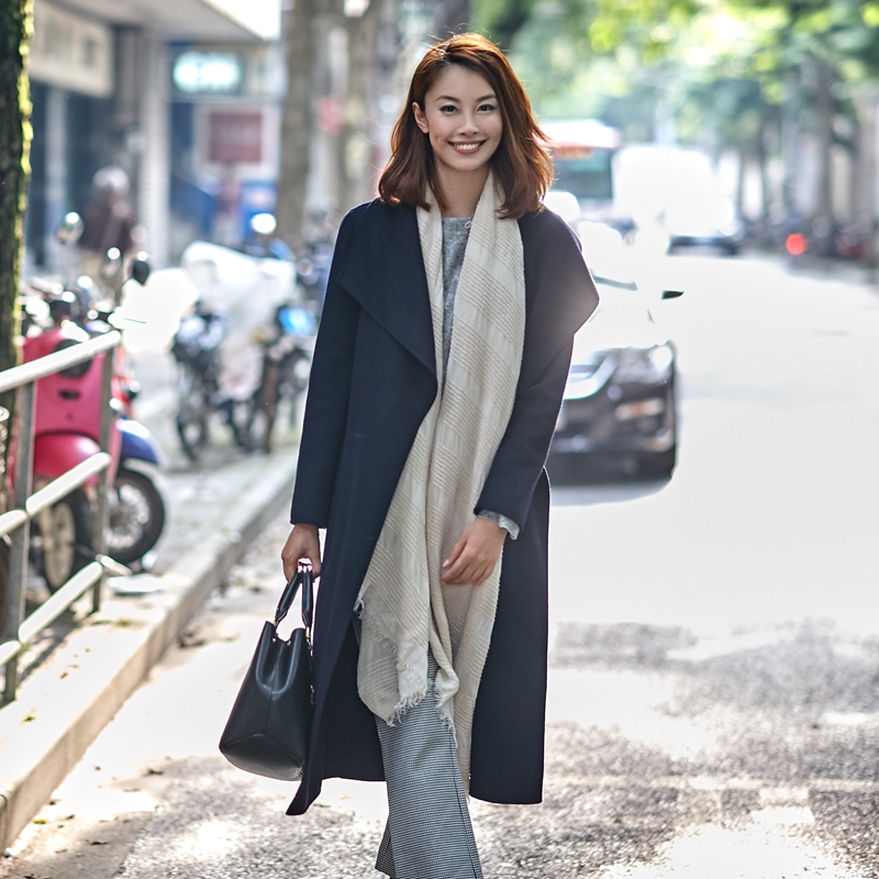 断码清仓乔妮塔女装2025秋冬季羊毛系带长款双面呢大衣零羊绒外套