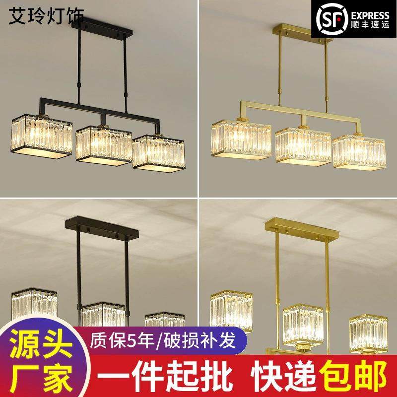 新中式餐厅吊灯三头长方形饭厅灯现代简约创意水晶灯吧台吊灯具