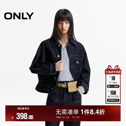 ONLY2025冬季新款经典洗水撞色明线双缝线设计落肩宽松牛仔外套女