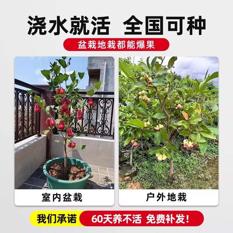 莲雾树苗黑金刚黑糖芭比台湾嫁接四季新品种南方带叶果树庭院地栽