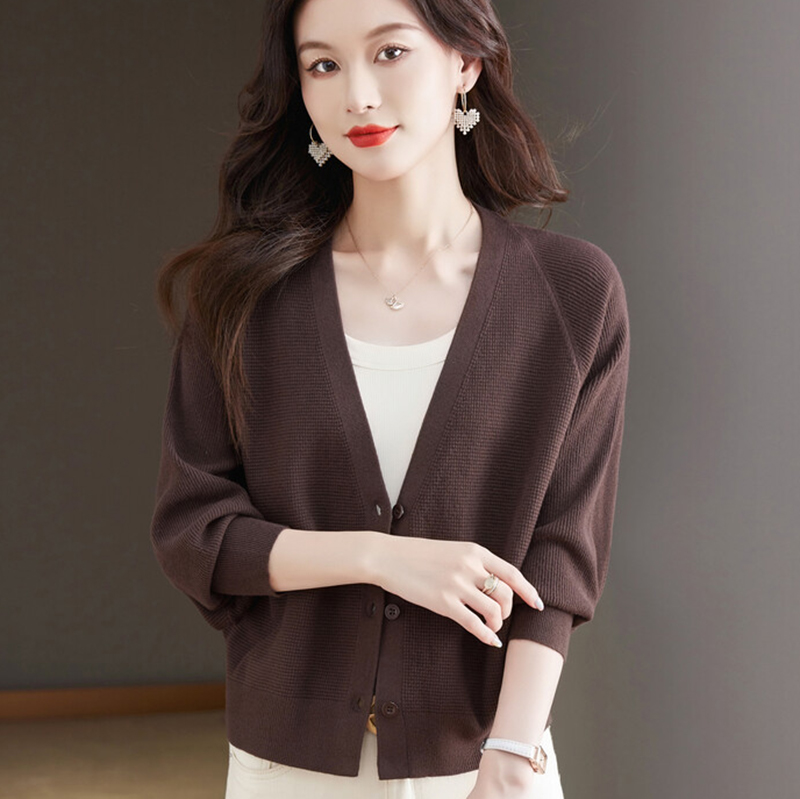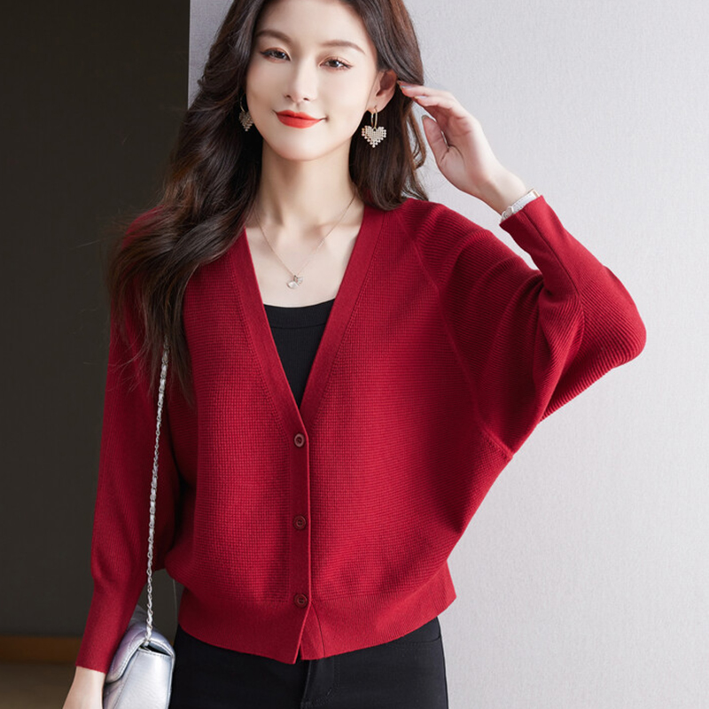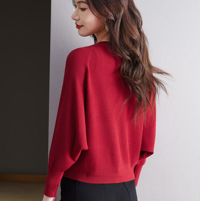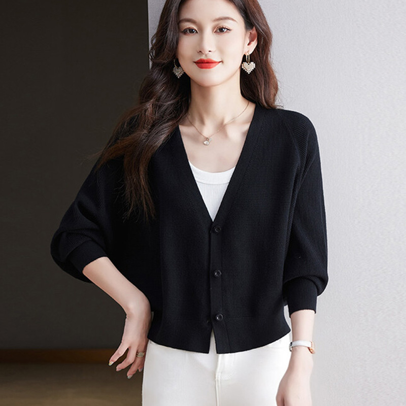 春秋高级感新款蝙蝠袖亲肤羊毛针织开衫外搭宽松加大短款毛衣外套