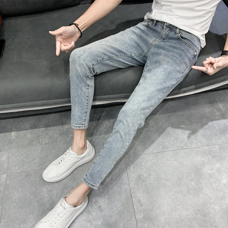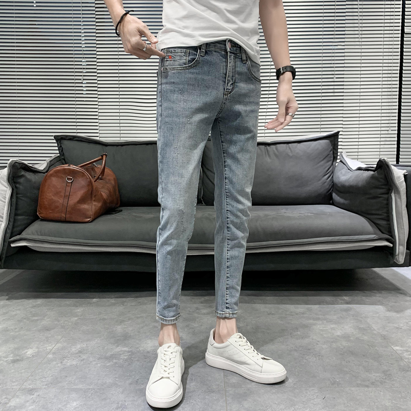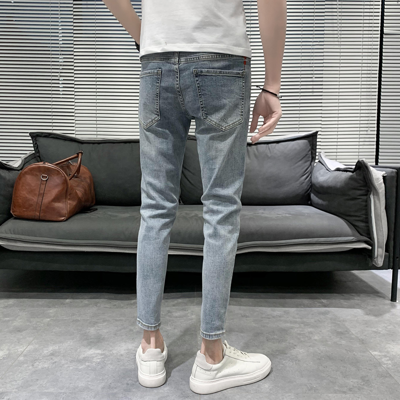 2024夏季薄款男士牛仔裤潮流修身小脚潮牌冰丝九分休闲裤百搭裤子