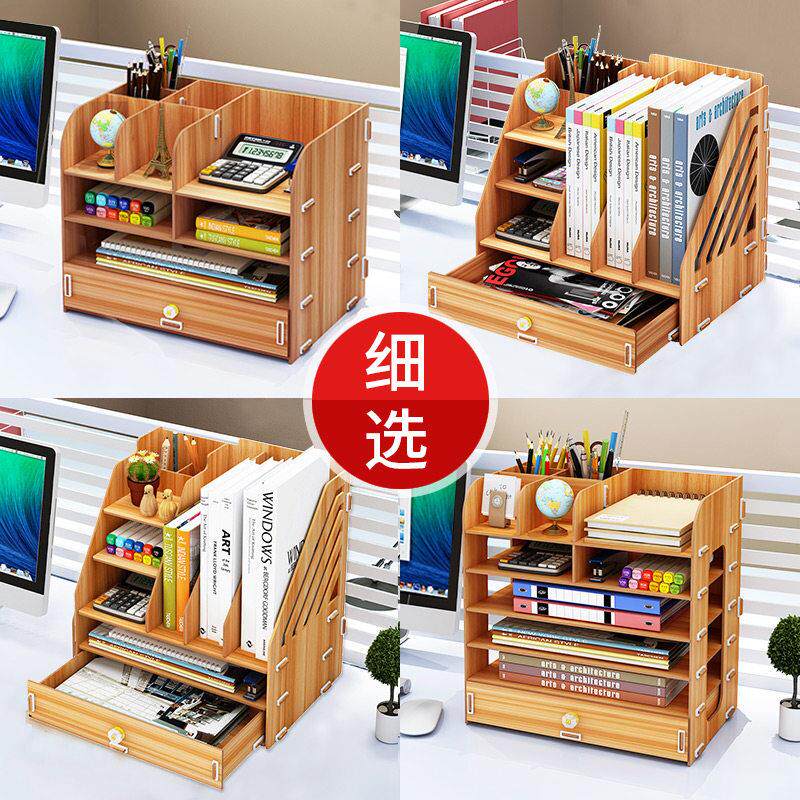办公桌面收纳盒用品大号多层抽屉文件夹文具室木质储物书桌置物架