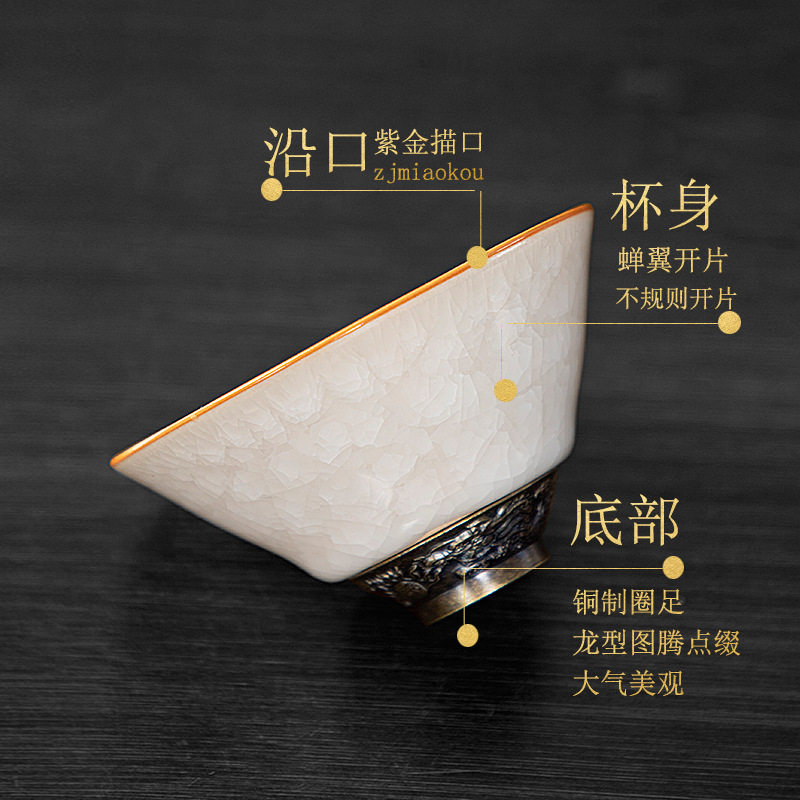 主人杯冰花汝窑陶瓷斗笠杯茶杯