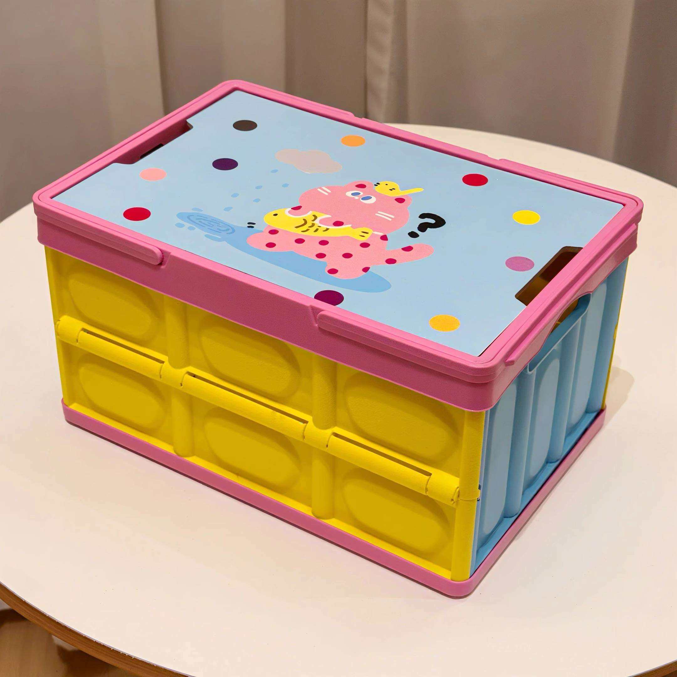 手提篮野餐后备箱整理箱户外收纳箱露营折叠箱多巴胺车载储物箱