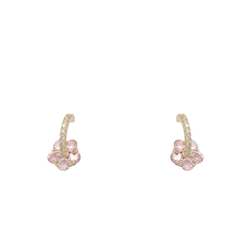 FRIDAY JEWELRY韩国热销NYU粉晶花朵锆石气质百搭镀金耳环银针