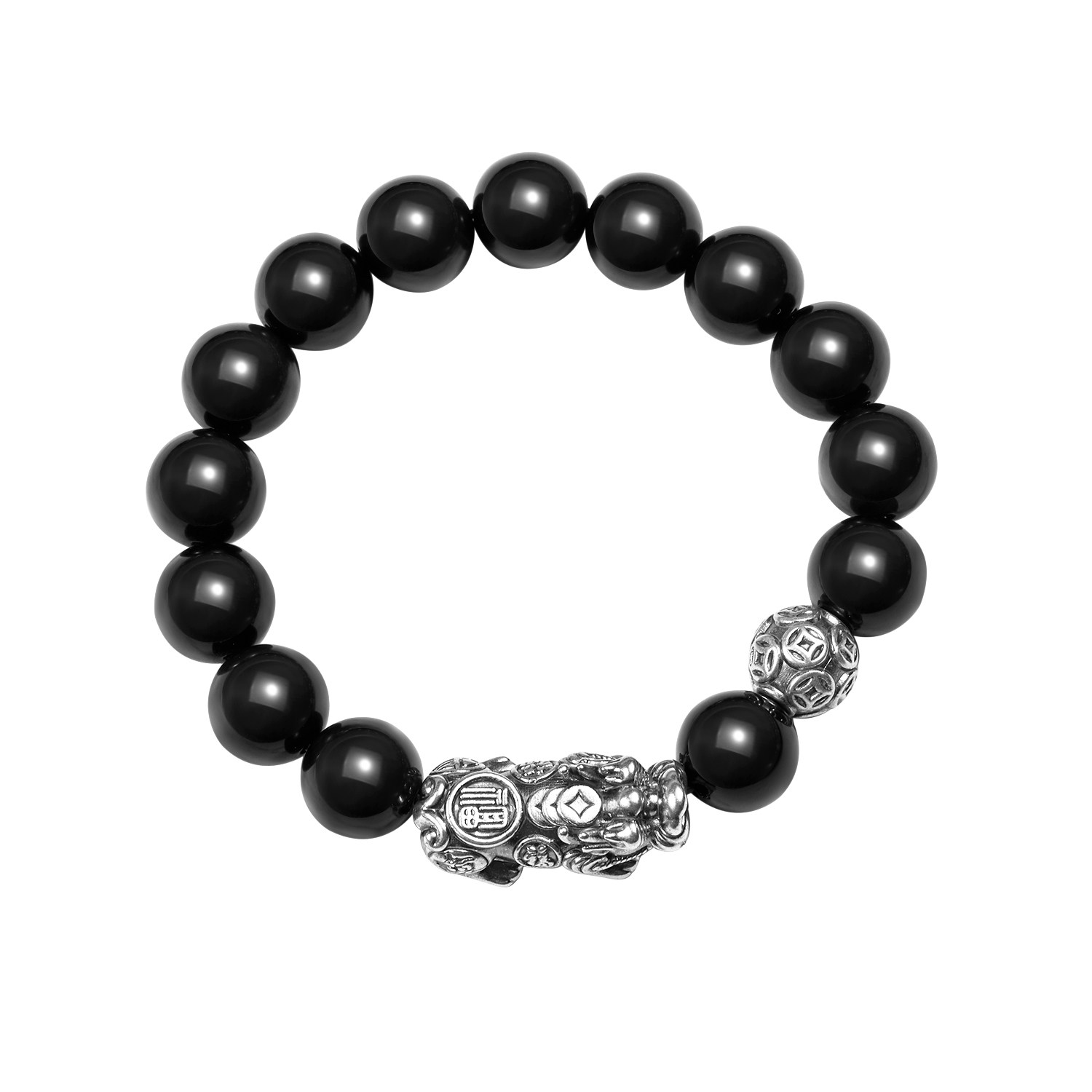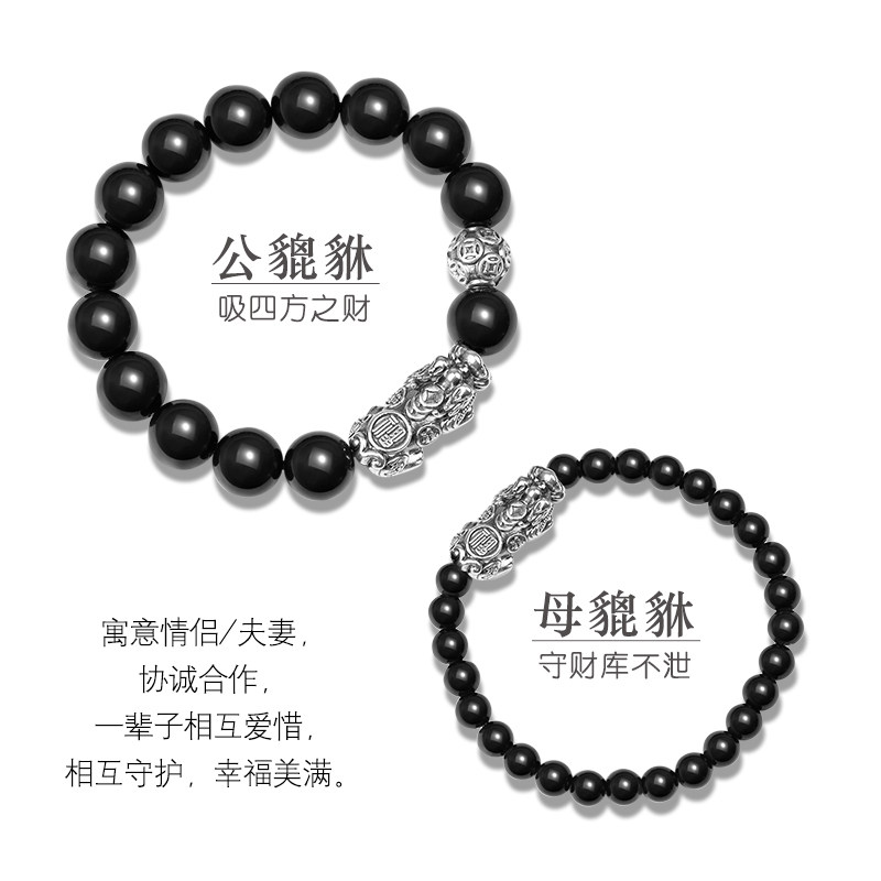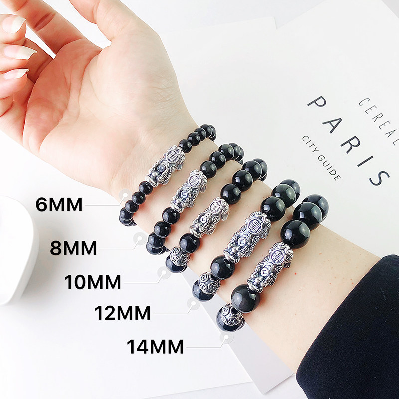 天然黑曜石手链女银999足银招财貔貅转运珠水晶手饰男生盘玩手串