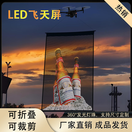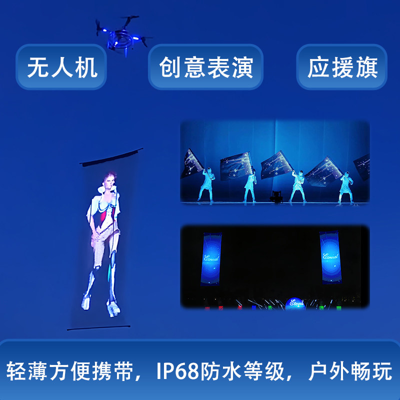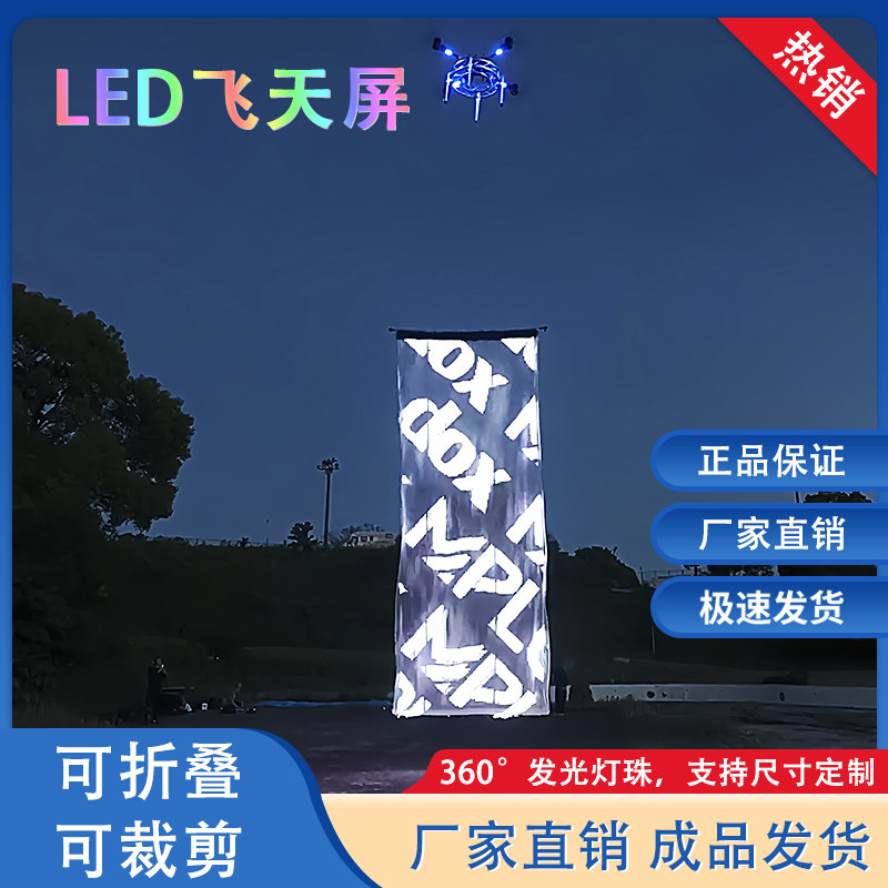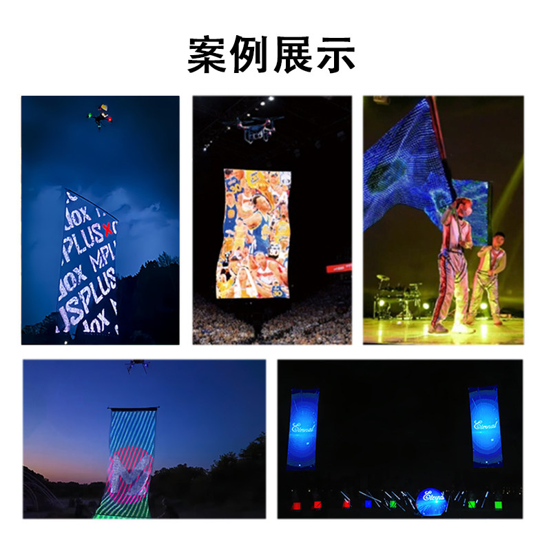 led飞天屏魔毯旗帜屏户外舞台全彩纺织可无人机吊广告显示屏