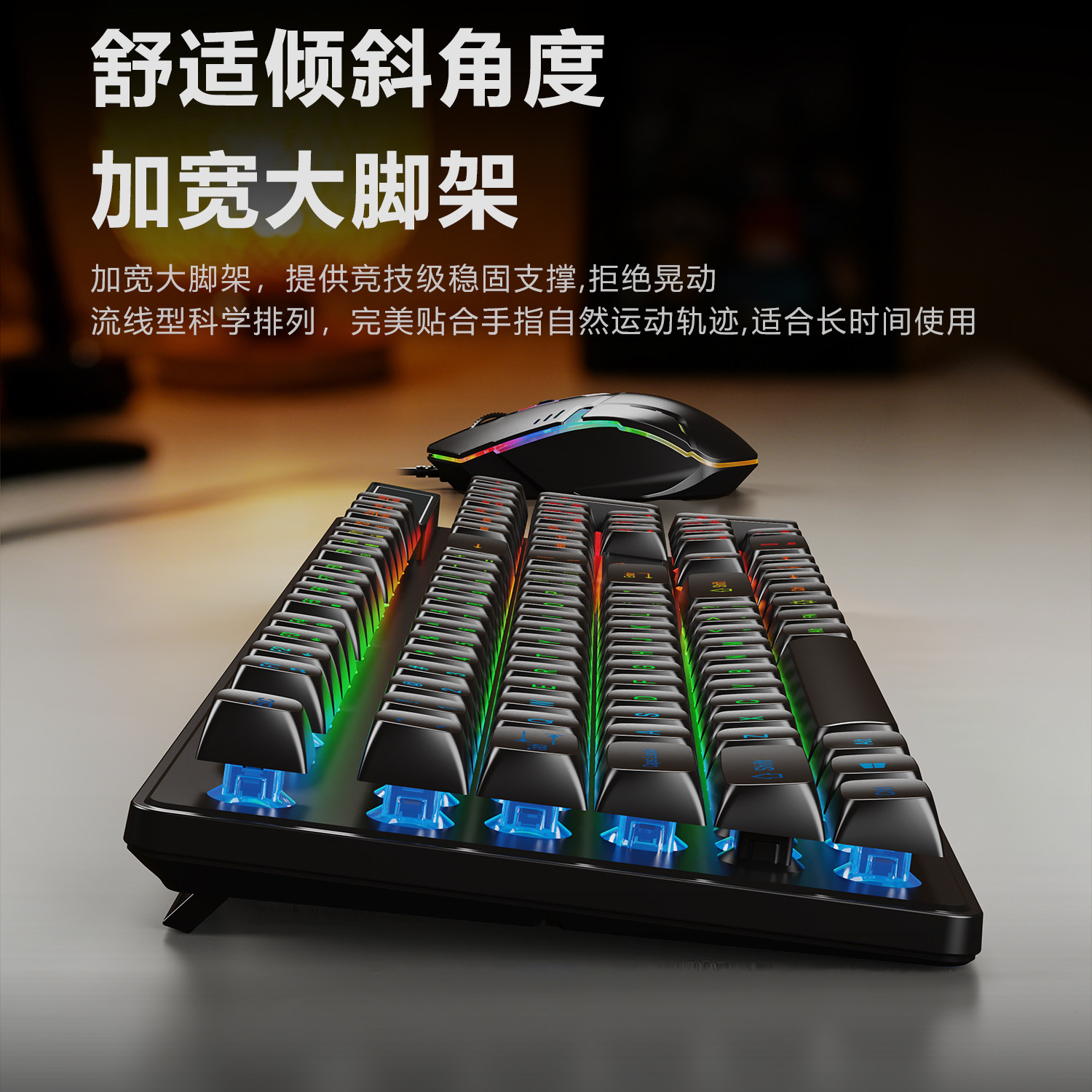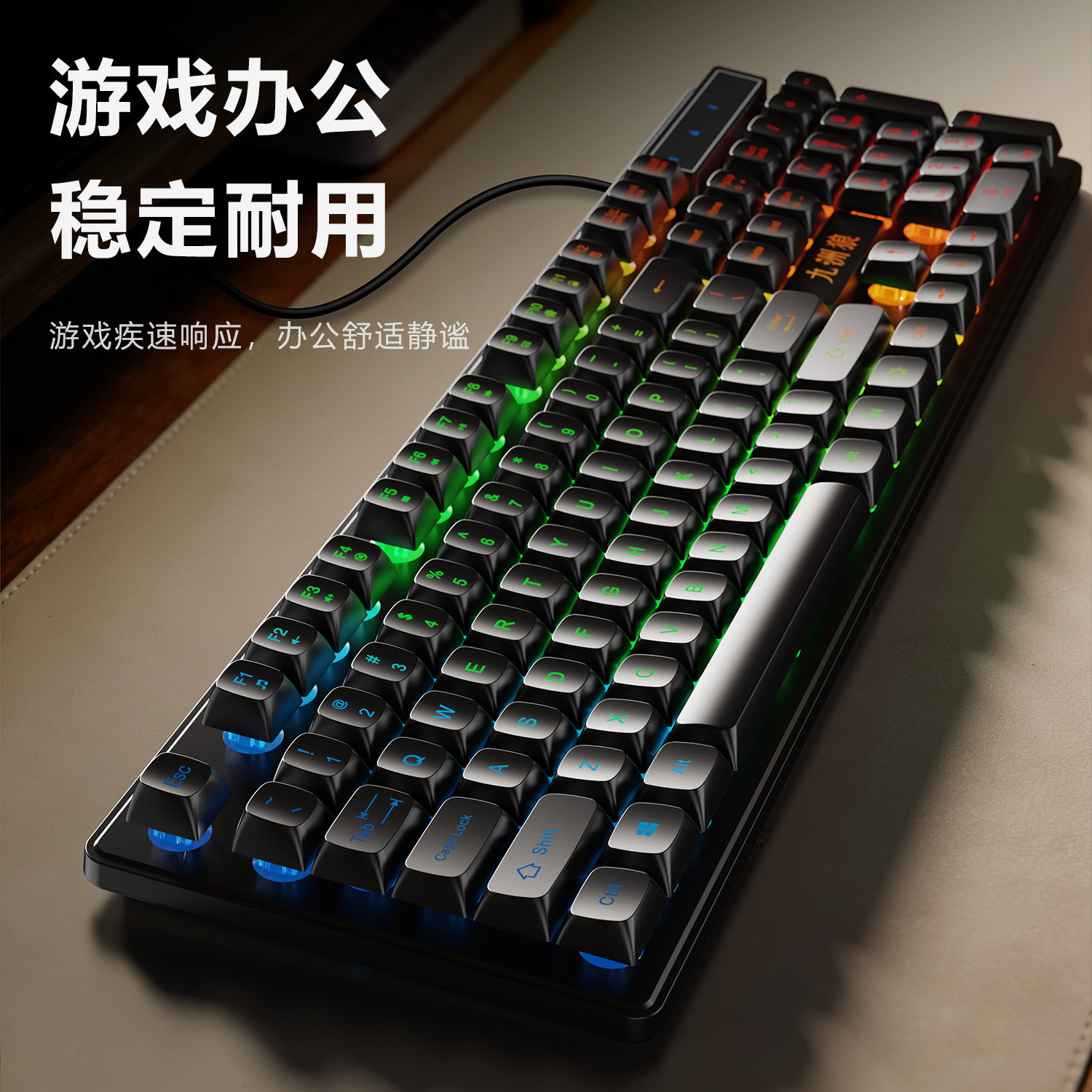 静音炫彩机械茶轴手感键盘有线发光键鼠套装办公游戏台式笔记本用