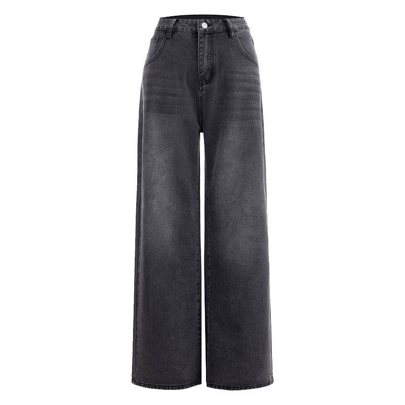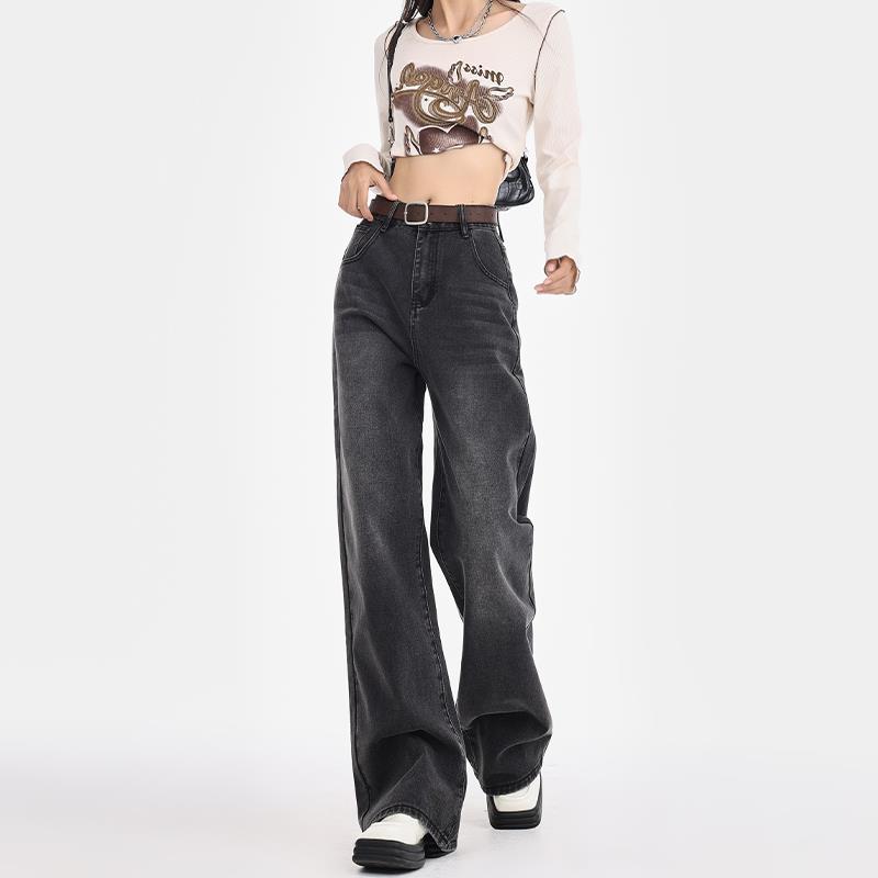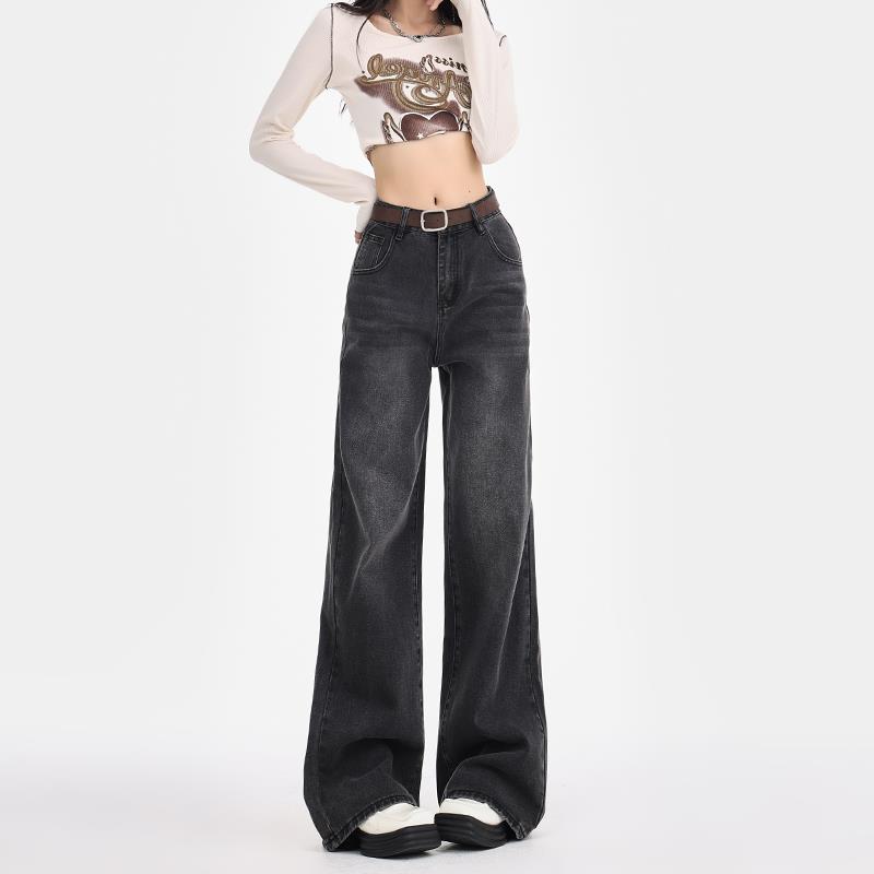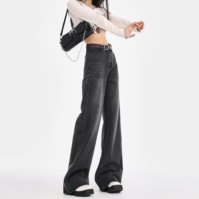 黑灰色直筒牛仔裤女春秋美式高腰夏季薄款显瘦阔腿裤子2025年新款