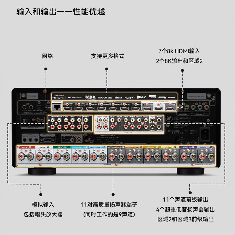 Marantz马兰士CINEMA40家庭影院AV功放9.4声道8K全景声11声道解码