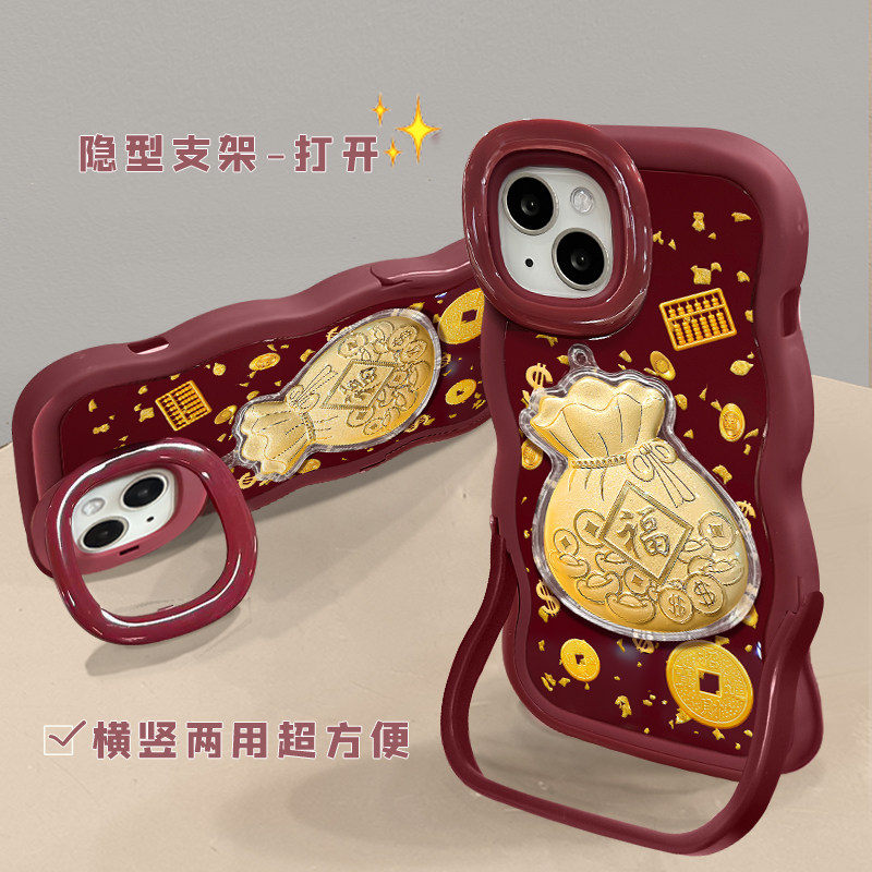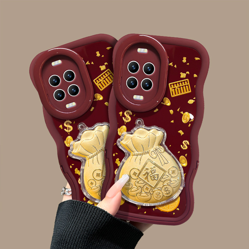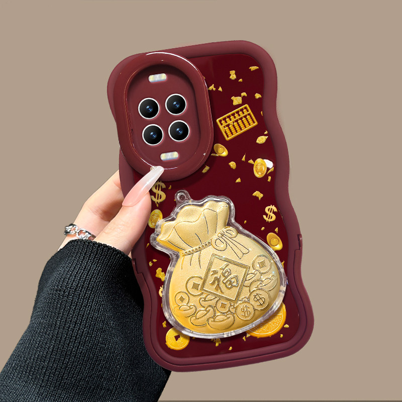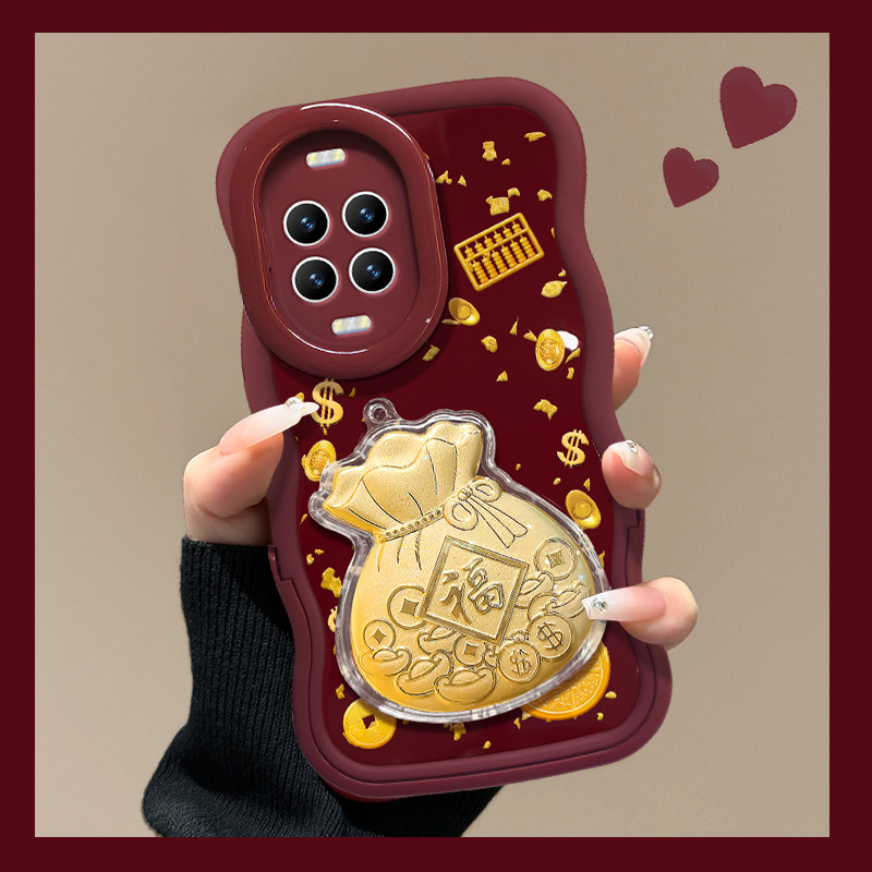 适用于华为Nova14Pro手机壳新女款13金钱币福袋贴件12酒红色新年11ultra隐形双支架10/9软硅胶波浪边8/7超火