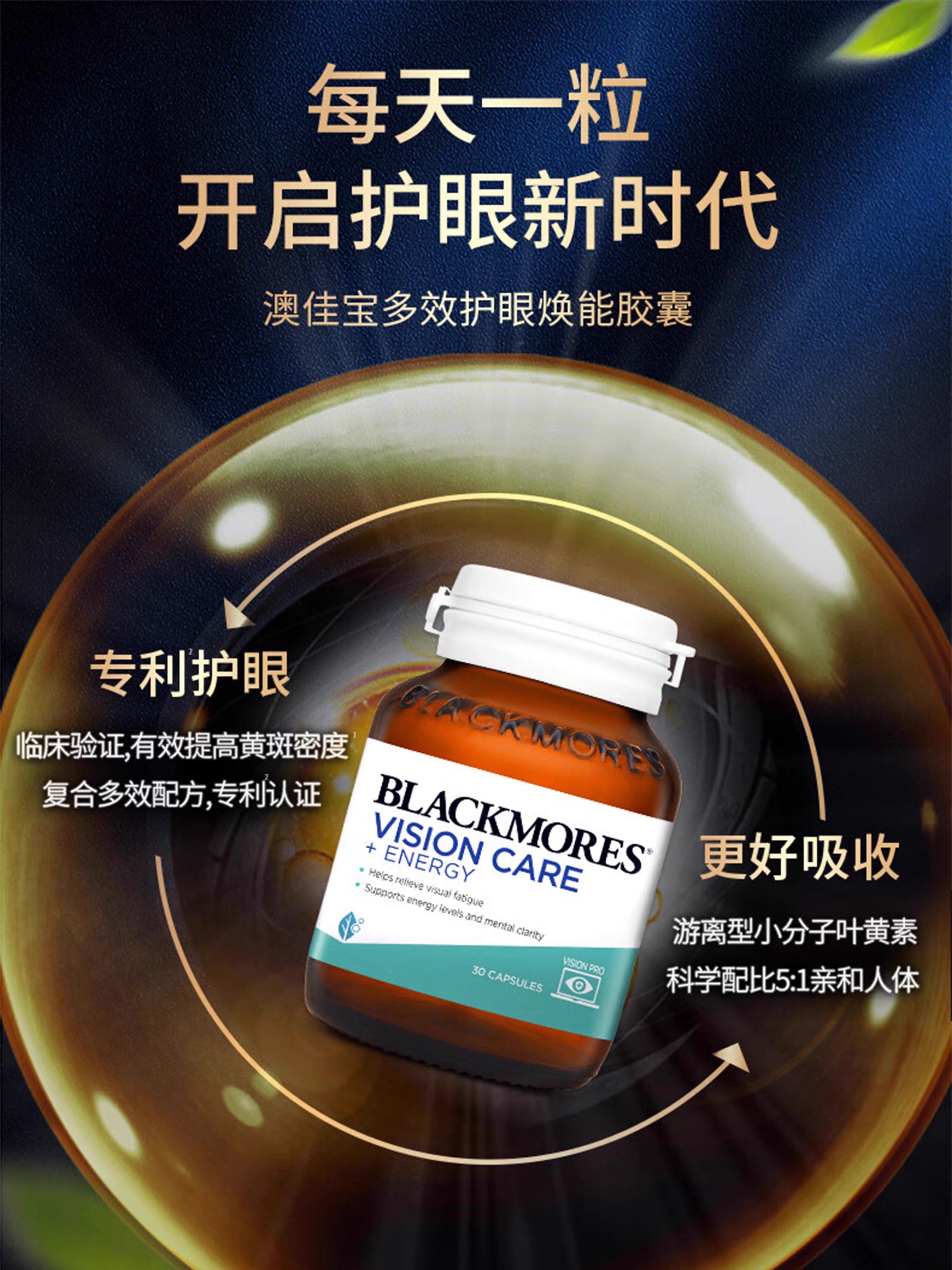澳佳宝Blackmores澳洲进口叶黄素多效护眼焕能玉米黄胶囊30粒