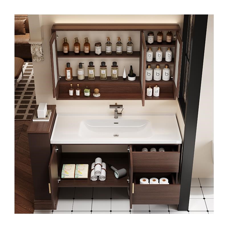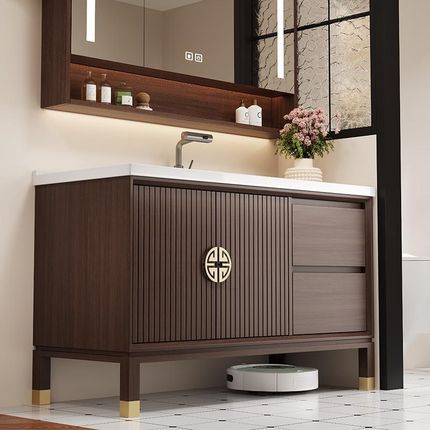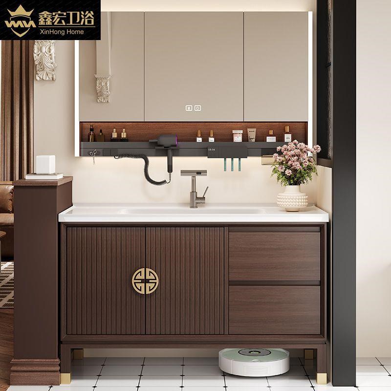 新中式浴室柜组合智能实木洗脸盆卫生间洗漱台洗手面盆陶瓷一体盆