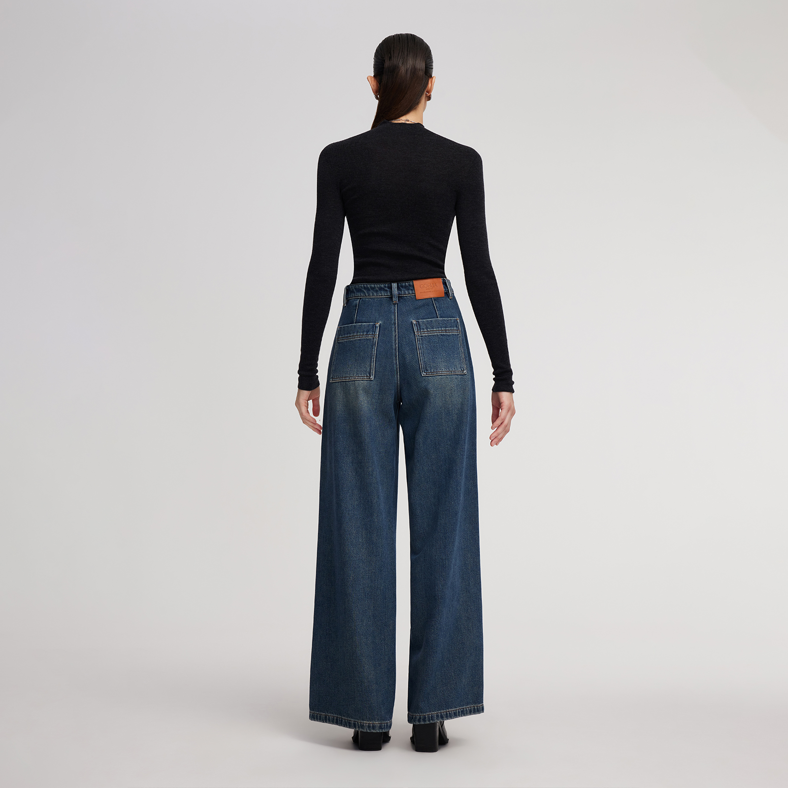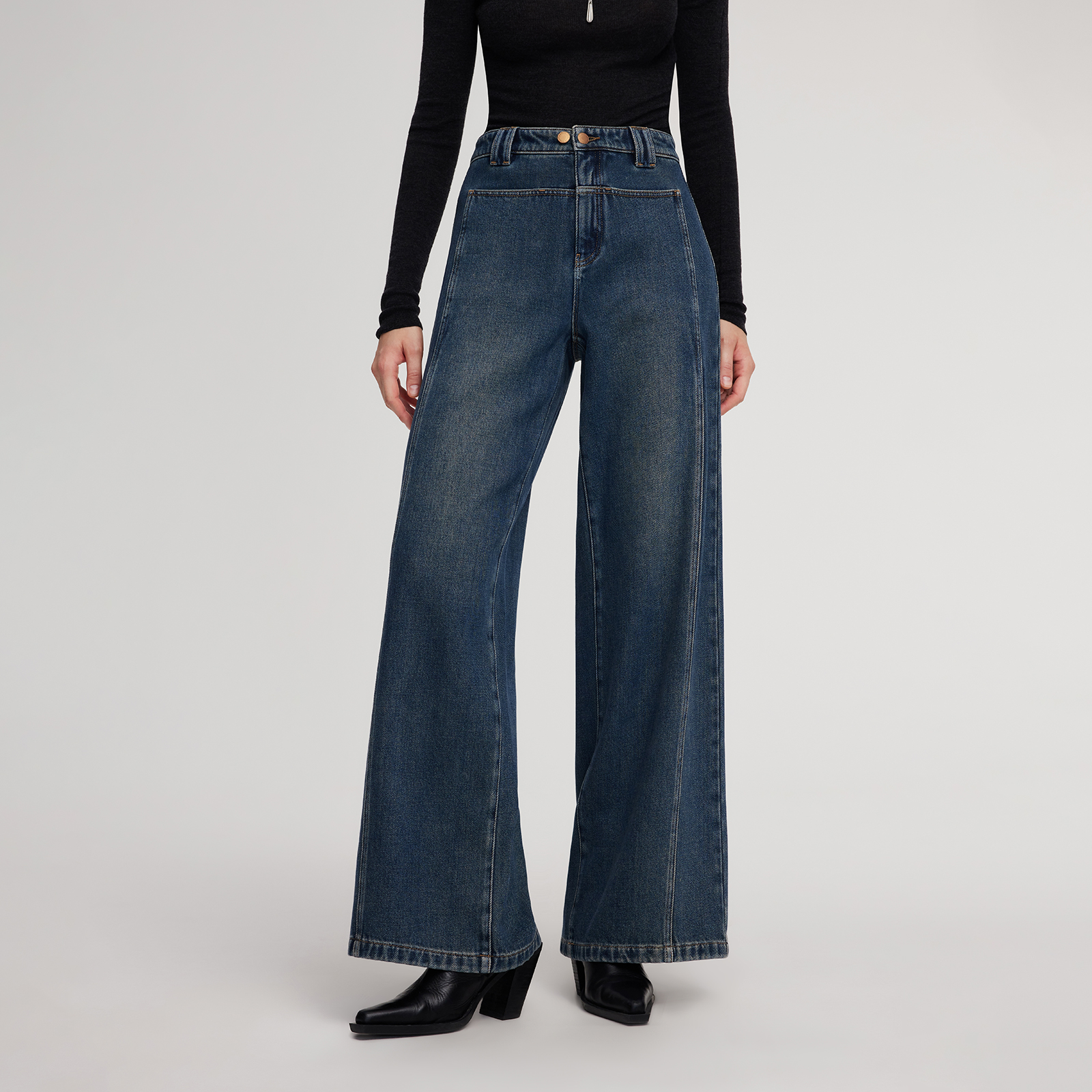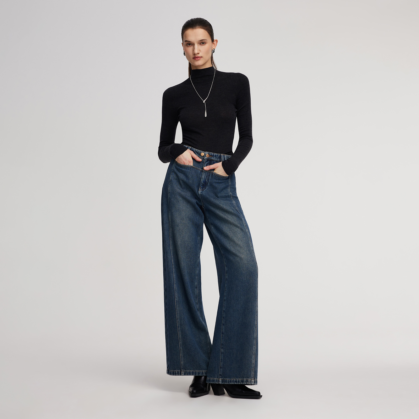 歌莉娅冬季牛仔裤阔腿裤高腰长裤