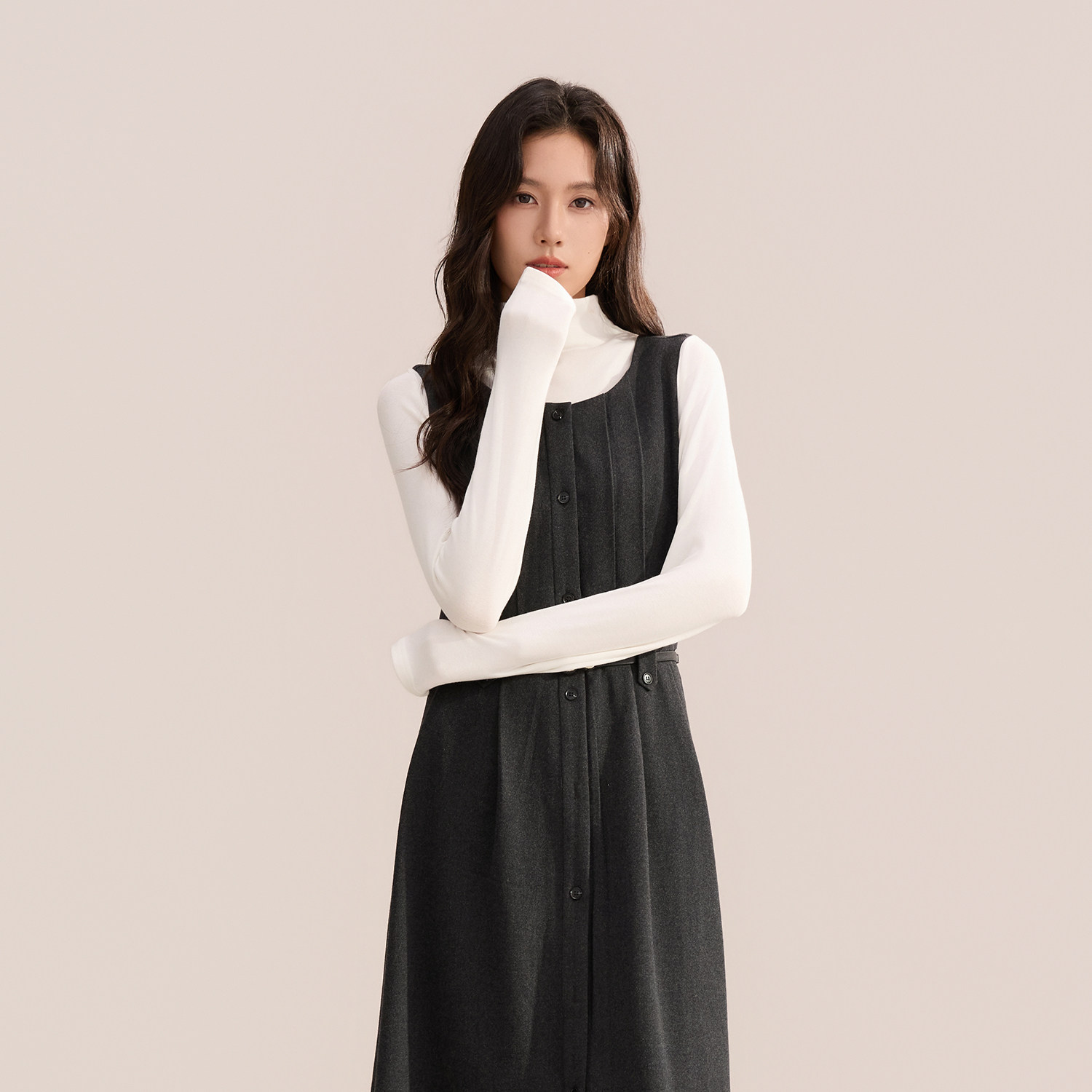 GCRUES简约毛呢背心裙两件套女
