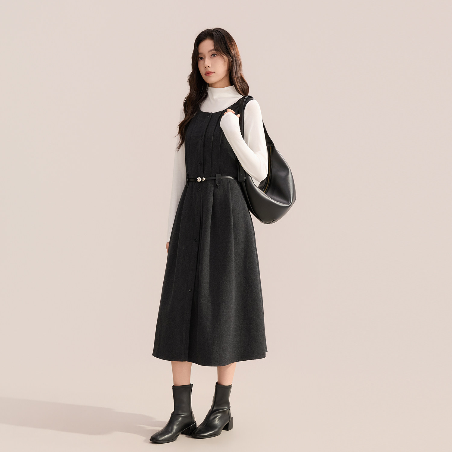 GCRUES商场同款简约毛呢背心裙两件套女冬时尚套装裙 G09D13A0262