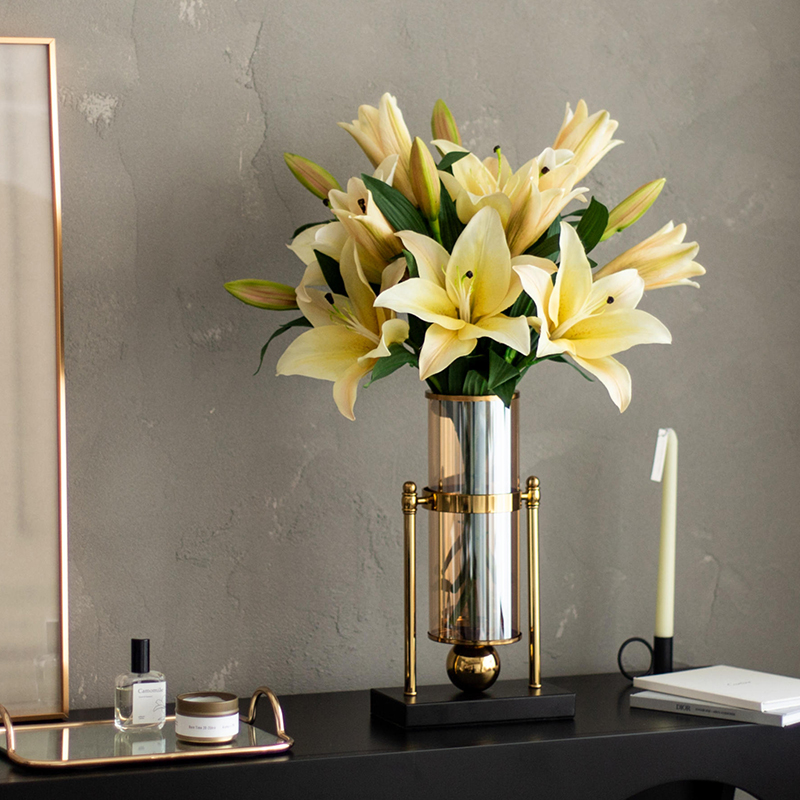 保湿手感百合花仿真花高级感逼真假花轻奢高档客厅电视柜餐桌装饰