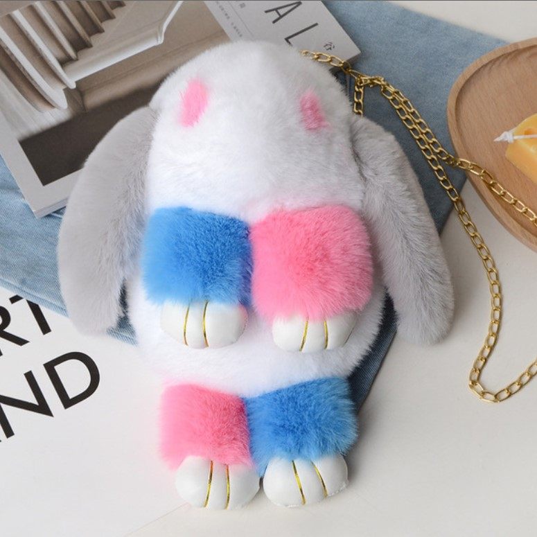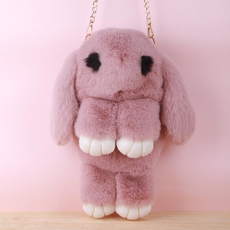韩版仿獭兔毛小兔子毛绒背包女生装死公仔兔玩偶包单肩斜挎双肩包