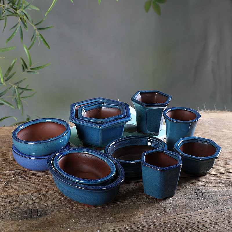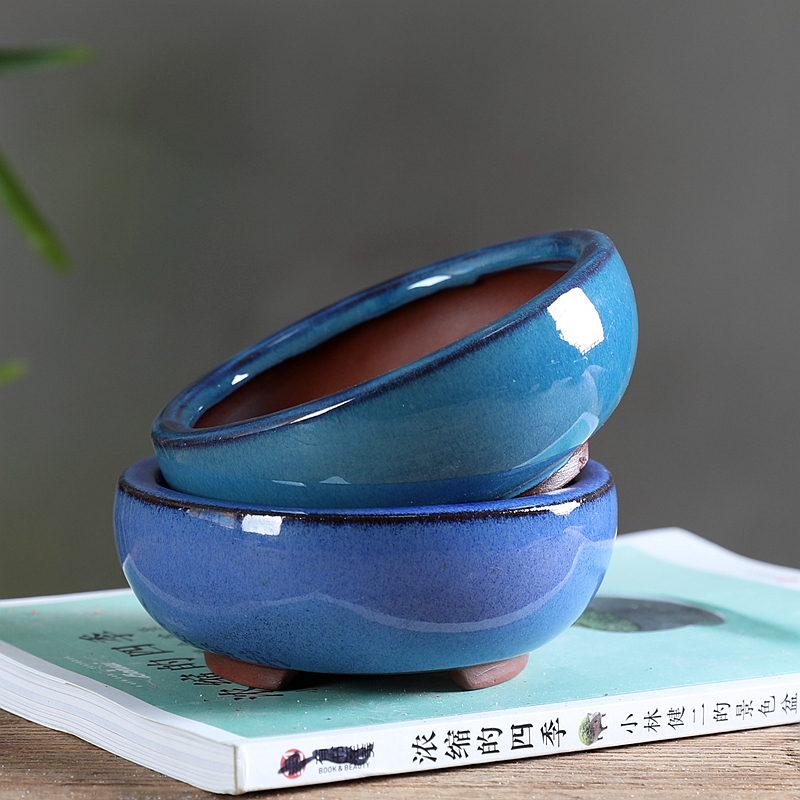 暖暖精选宜兴紫砂均釉系列03蓝色微型多肉花盆绿植盆栽室内桌面