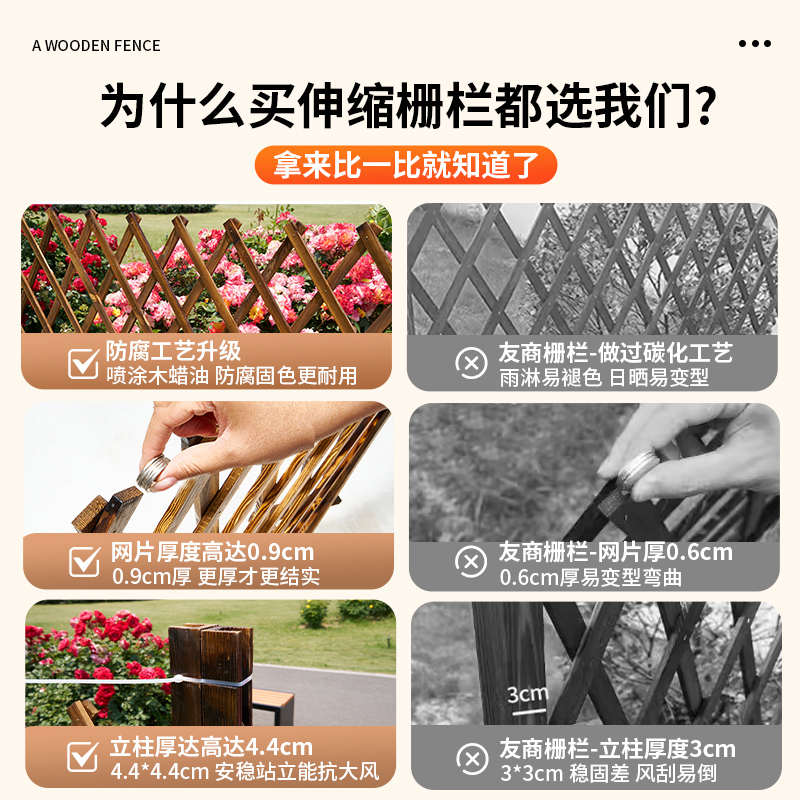 户外防腐木栅栏伸缩围栏花园篱笆室外庭院装饰网格爬藤架护栏隔断