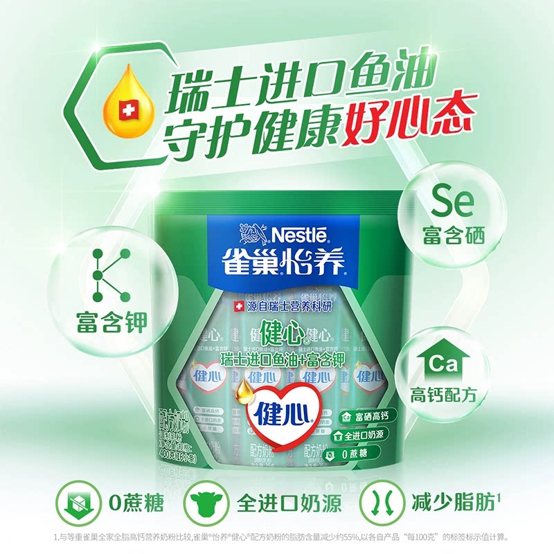 雀巢怡养健心中老年牛奶粉瑞士进口奶源鱼油高钙送礼长辈