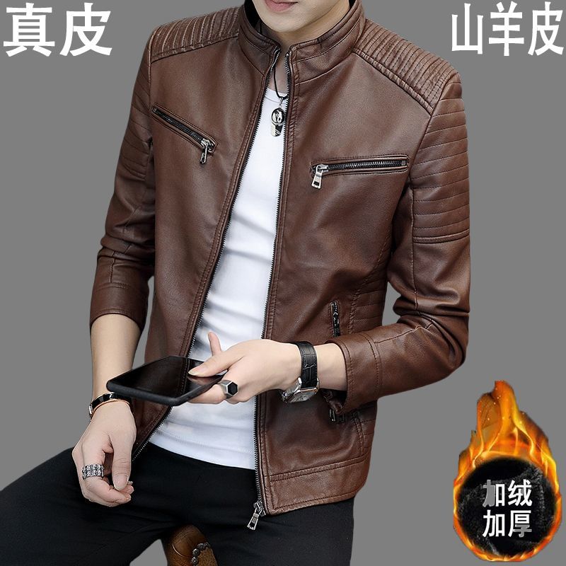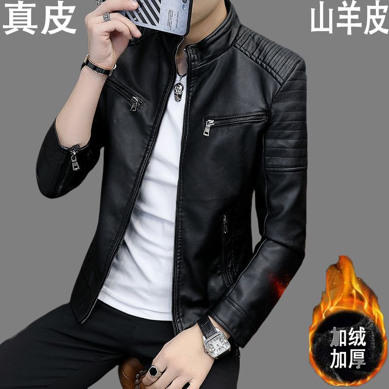 皮衣男薄款春秋季韩版皮衣男外套2022皮夹克机车潮流青年加绒立领